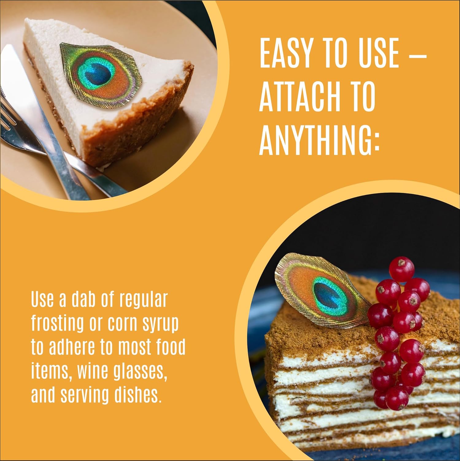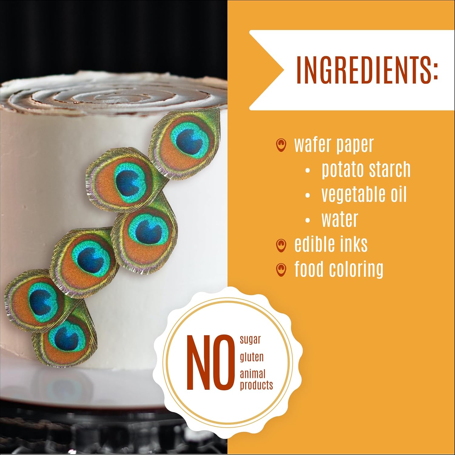 Edible Peacock Feathers - Set of 12 - Cake Decorations, Cupcake Topper