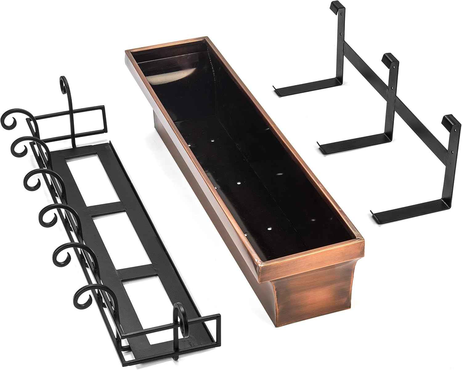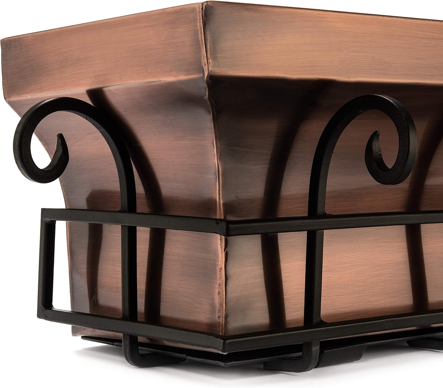 - 36 inch window boxes for the home β The rich color of this flared window box adds an extra layer of depth to any outdoor decor. The antique copper finish is perfectly paired with the black powder coat of the frame, and is accentuated by the scroll work on the frame. The wide mouth at the top of the window flower box allows your flowers to breathe and grow throughout the box. The sturdy but lightweight design allows the easy to remove brackets to functionally support the window box.