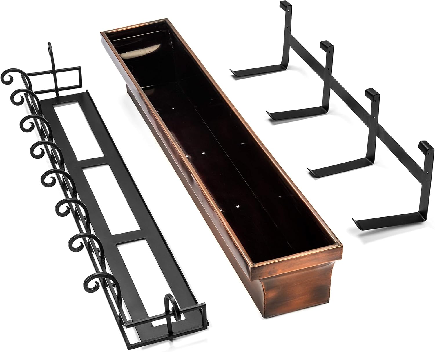 H Potter Window Planter Box Copper Outdoor Flower Plant Container for Windows Attach to House Deck Balcony Long Rectangular Shape 48 Inch Length GAR514B