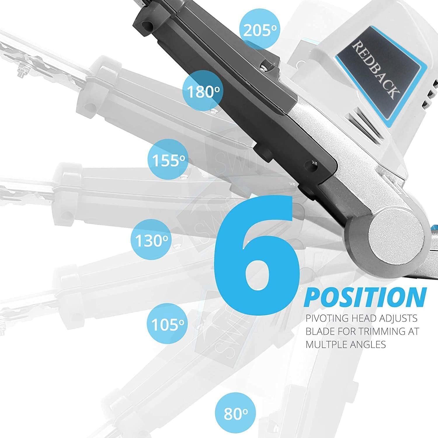 Redback 40V Cordless Pole Hedge Trimmer Long Reach 20" Cutting Length 6 Position Adjustable Head with Battery and Charger