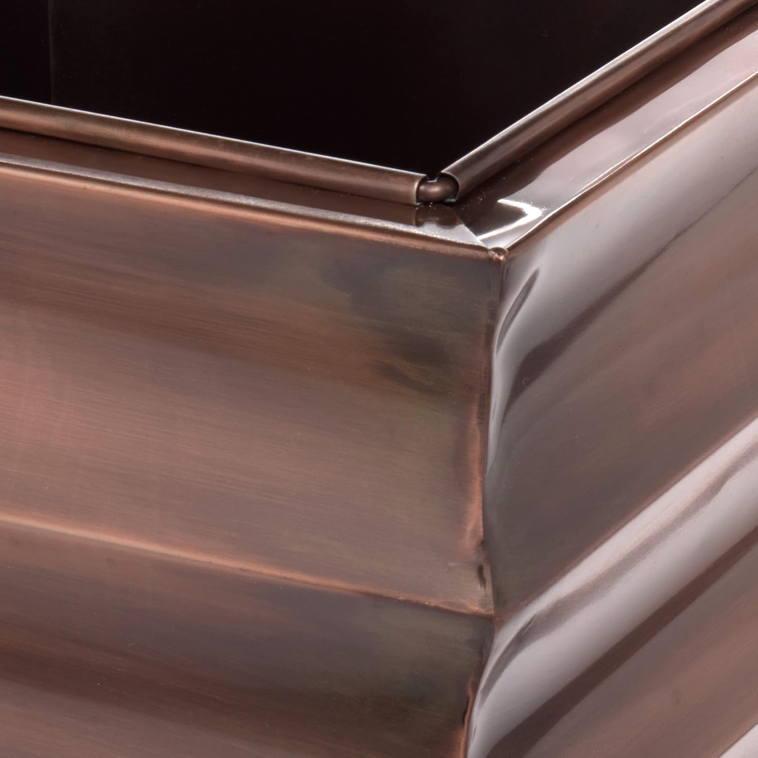 - Ribbed Planter Dimensions: Planter stands 29 inches tall and 11.25 inches square at the mouth of the planter, with the base measuring 8.25 inches square. Let this dynamically sized copper pot become the perfect addition to a porch or patio
