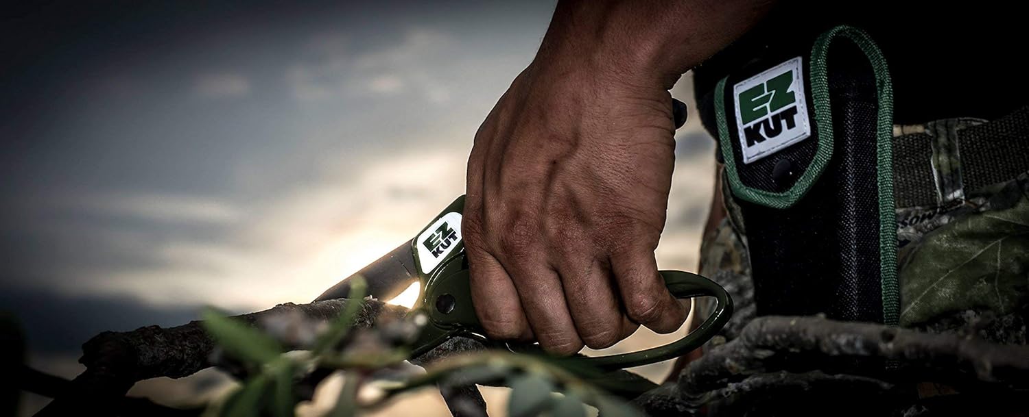 EZ Kut Original Ratcheting Pruner Kit with Molded Ballistic Nylon Sheath and Carbide Blade Tool, Green and Black