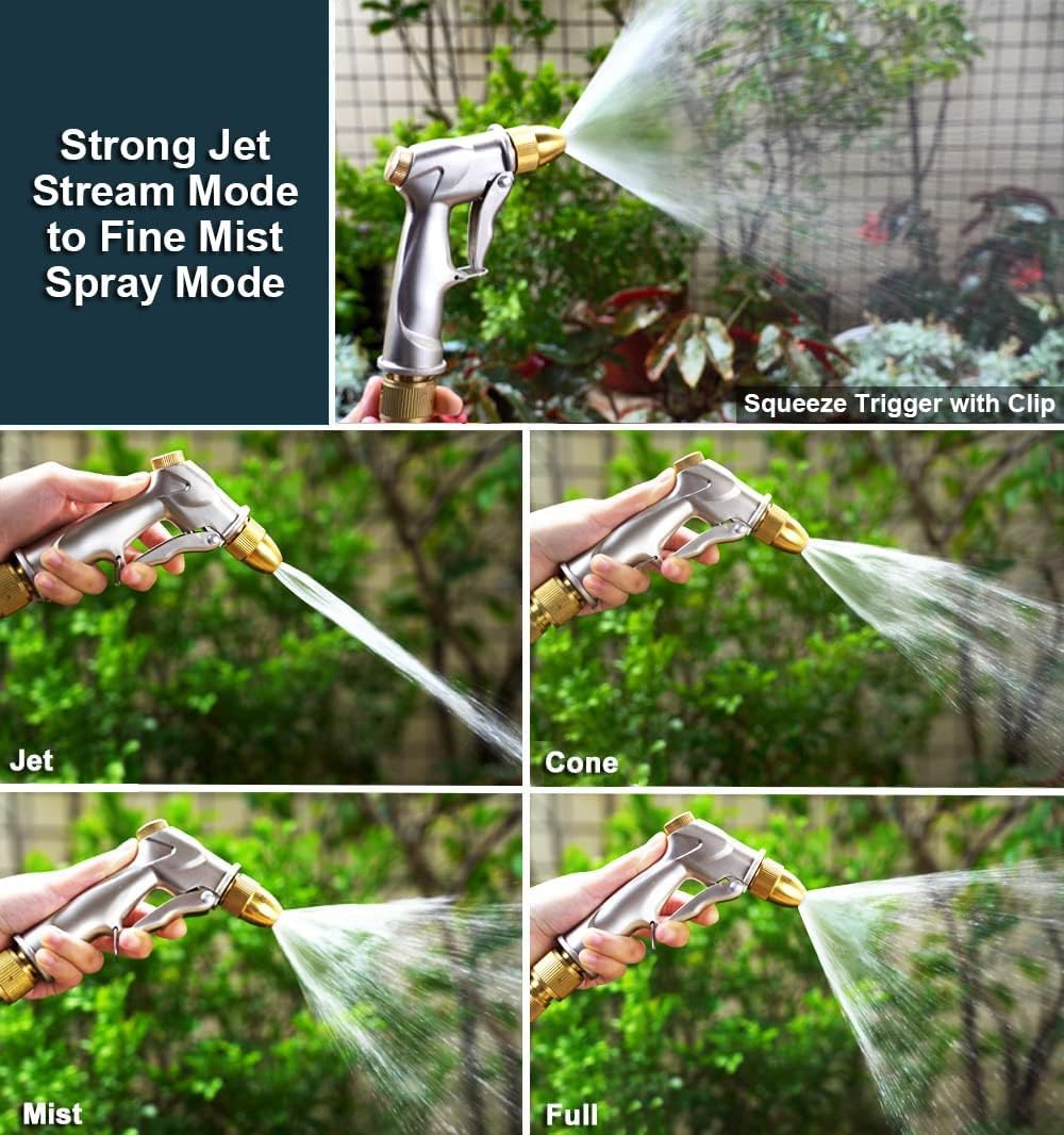 ESOW Garden Hose Nozzle, 100% Heavy Duty Metal Spray Gun with Full Brass Nozzle, 4 Watering Patterns Watering Nozzle- High Pressure Pistol Grip Sprayer for Watering Plants, Car Wash and Showering Dog