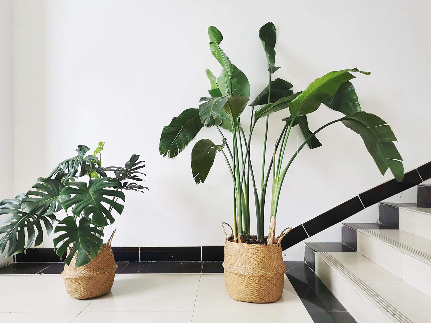 Extra Large Seagrass Plant Basket with Handles, Wicker Woven Storage Basket (14.1“ Diameter x 13.8" Height), Natural)