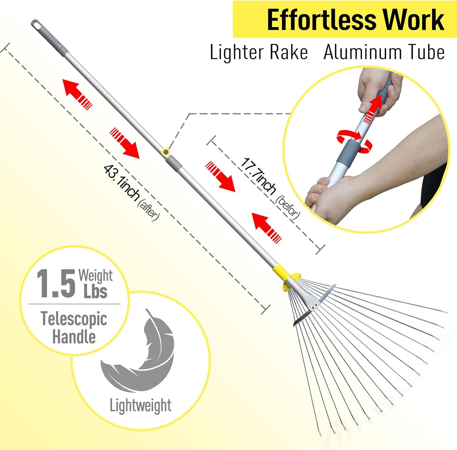 - 【Lightweight Rake Yet Durable】- Upgrade thickened Alumimum handle! This grass rakes for lawns is improved to be both lightweight and durable, only 1.5 pounds thus save effort and less fatigue after long-time work