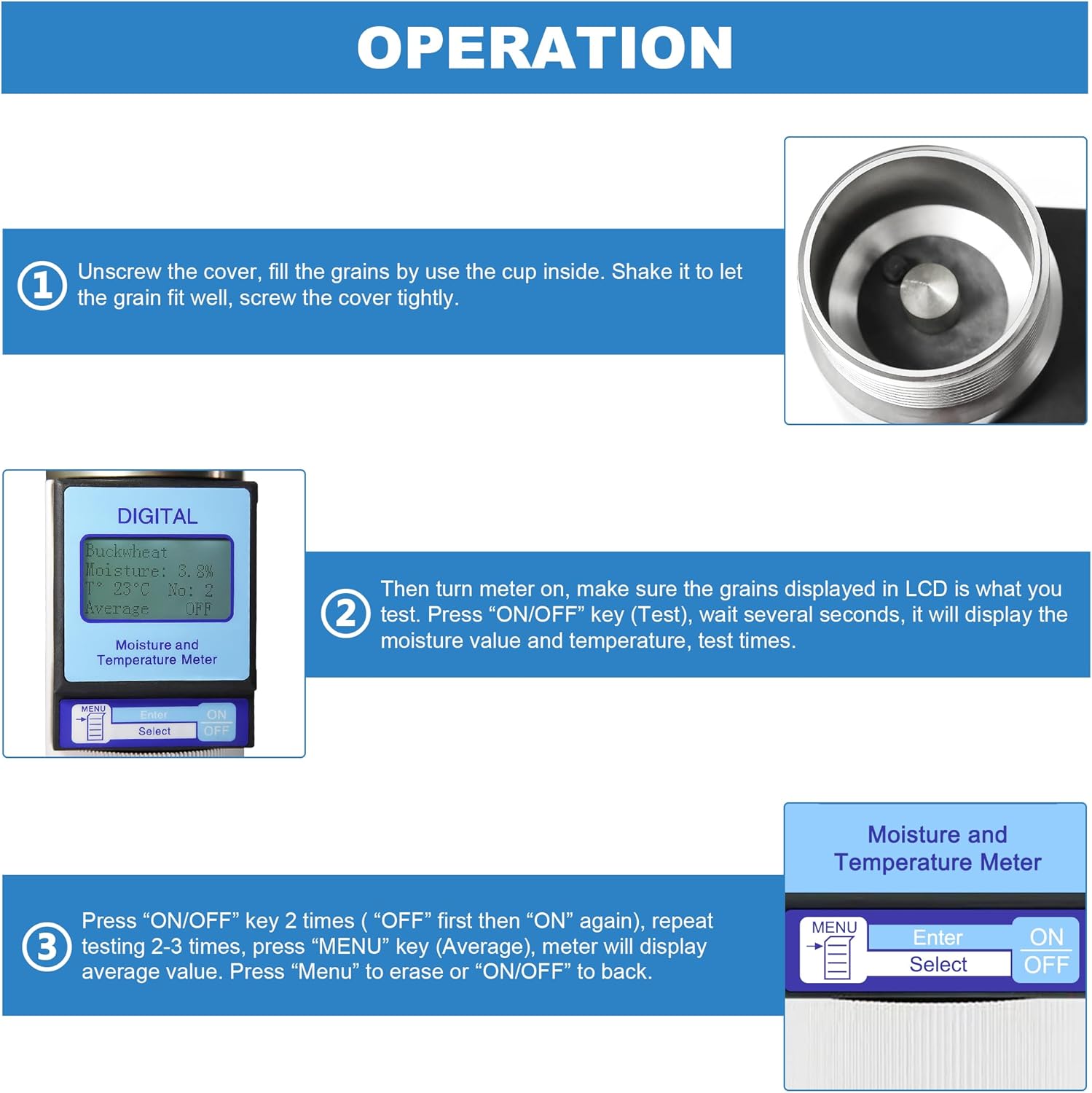 Grain Moisture Meter High Precision Grain Moisture Tester with Moisture & Temperature Display Seed Moisture Meter for 25 Grains Including Wheat, Soybean, Coffee and More