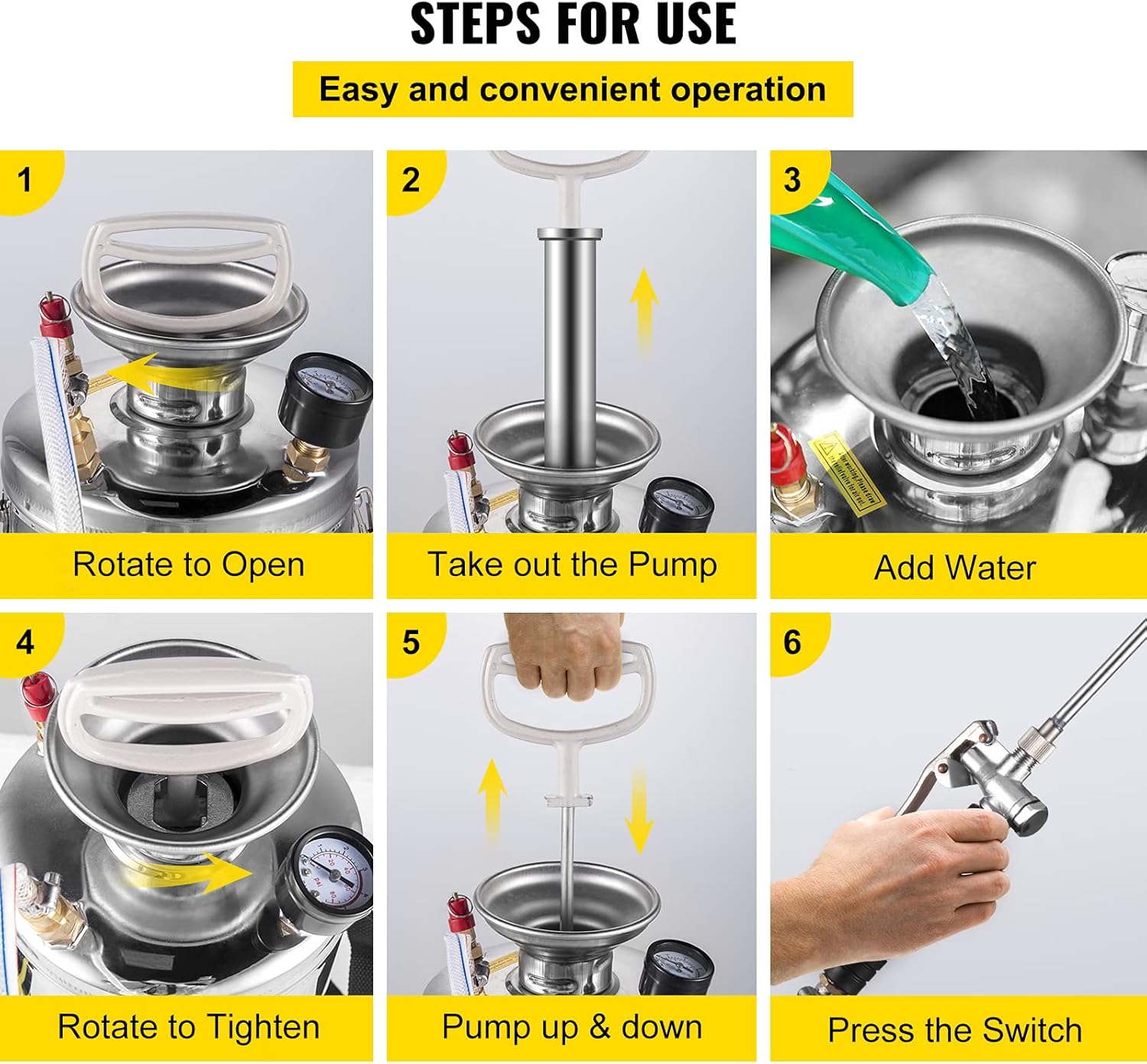 - Easy to Use & Carry: The bowl-shaped water inlet of the garden sprayer is convenient for filling water, and the humanized handle is designed for quickly building up air pressure. It also comes with an adjustable shoulder strap for convenient carrying.