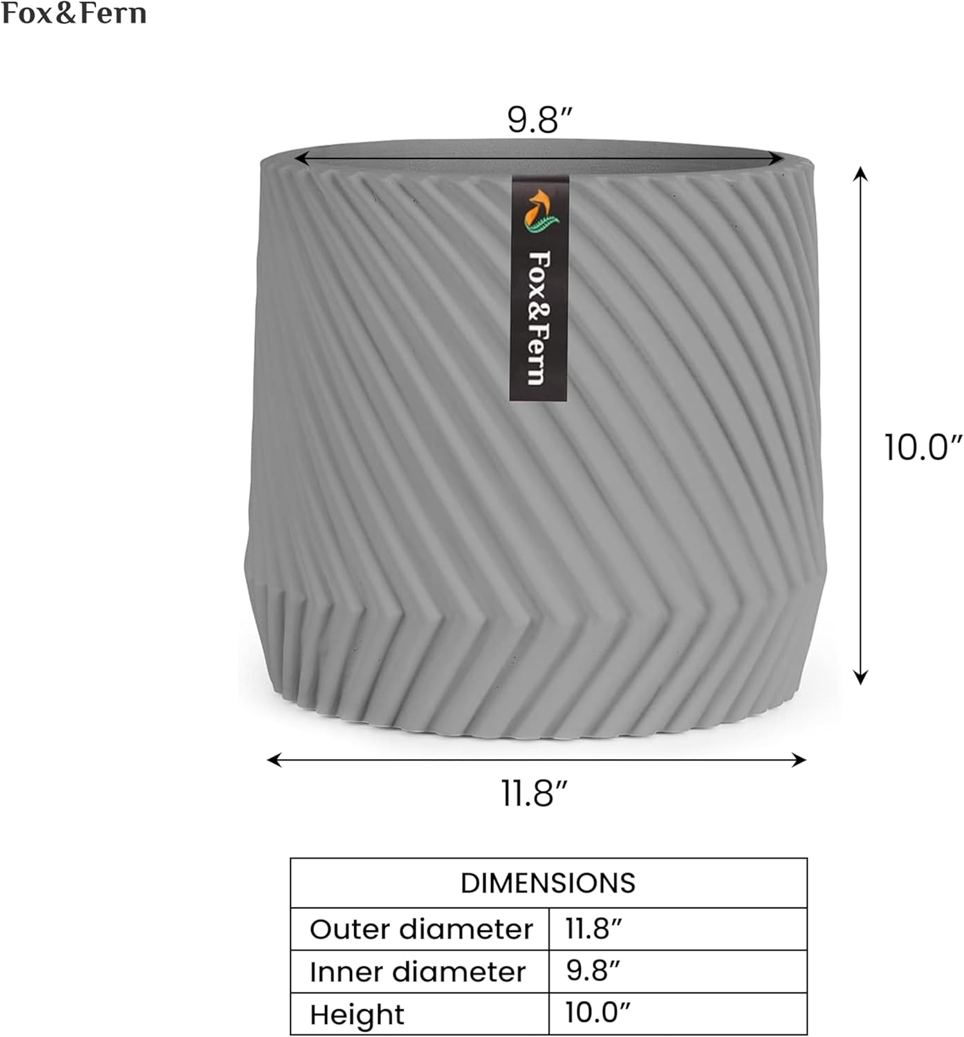 - LARGE PLANTER – This large 12 inch planter is 11.8” in outer diameter and 9.8” in inner diameter, allowing you to conveniently fit your large-sized plant. Dimensions: Outer width: 11.8" | Inner width: 9.8" | Height: 10.0"