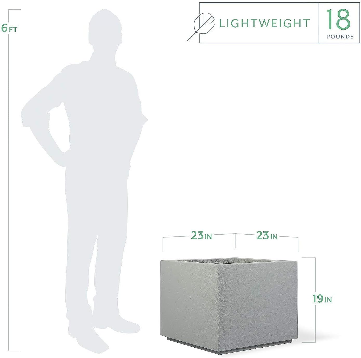 PolyStone Monterray Modern Outdoor/Indoor Square Planter, 23" L x 23" W x 19" H, Lightweight, Heavy Duty, Weather Resistant, Polymer Finish, Commercial Grade and Residential (Concrete Gray)