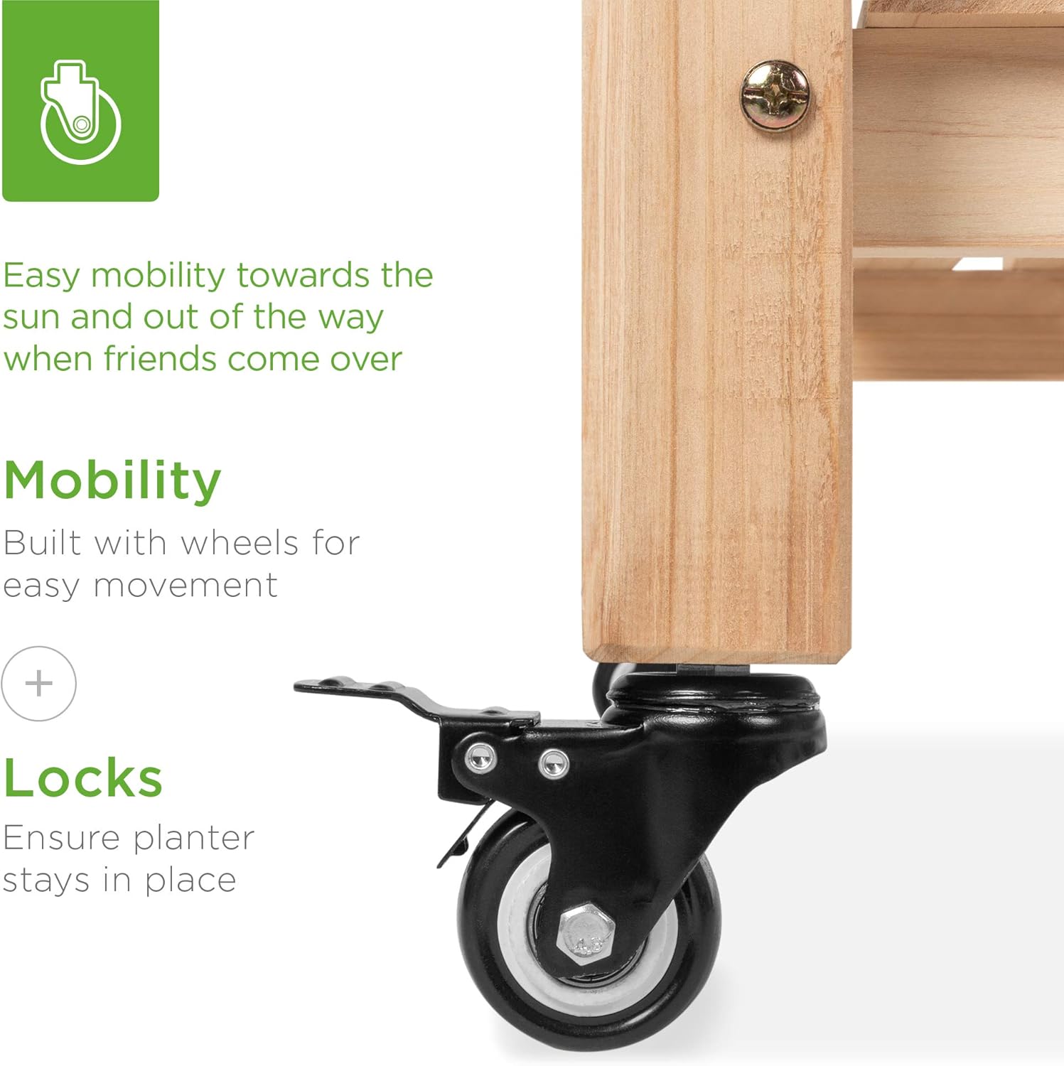 - EASY MOBILITY: Built with a set of locking wheels to move the planter from place to place and capture the right amounts of sun and shade