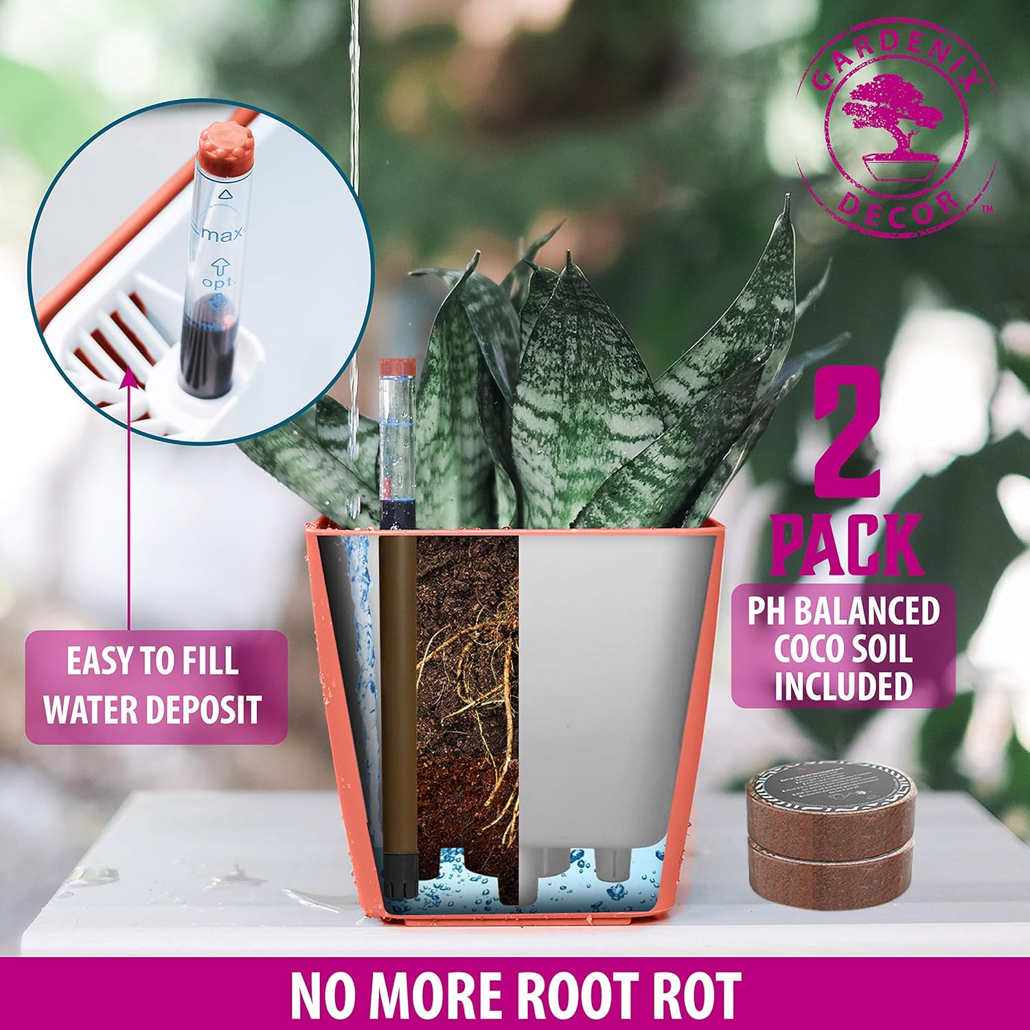 GARDENIX DECOR 5" Self Watering pots for Indoor Plants - Flower Pot with Water Level Indicator for Plants, Grow Tracking Tool - Self Watering Planter Plant Pot – 2 Pack Terracota