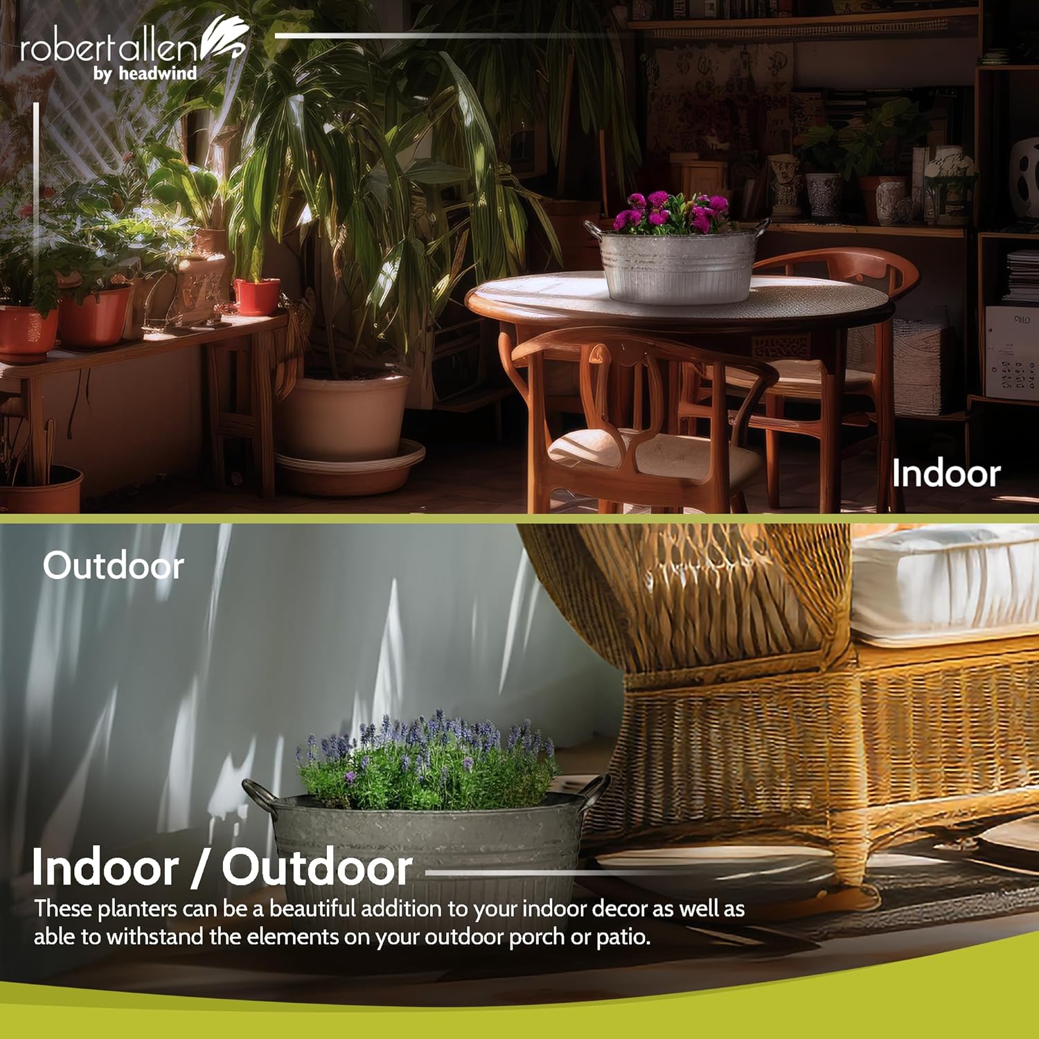 Headwind Oval Galvanized Tubs Planter with Handles – 12 Inch Lightweight Steel Indoor Oval Plant Pot with Drainage Holes – Large Galvanized Tub Flower Bucket – Outdoor Planter by Robert Allen