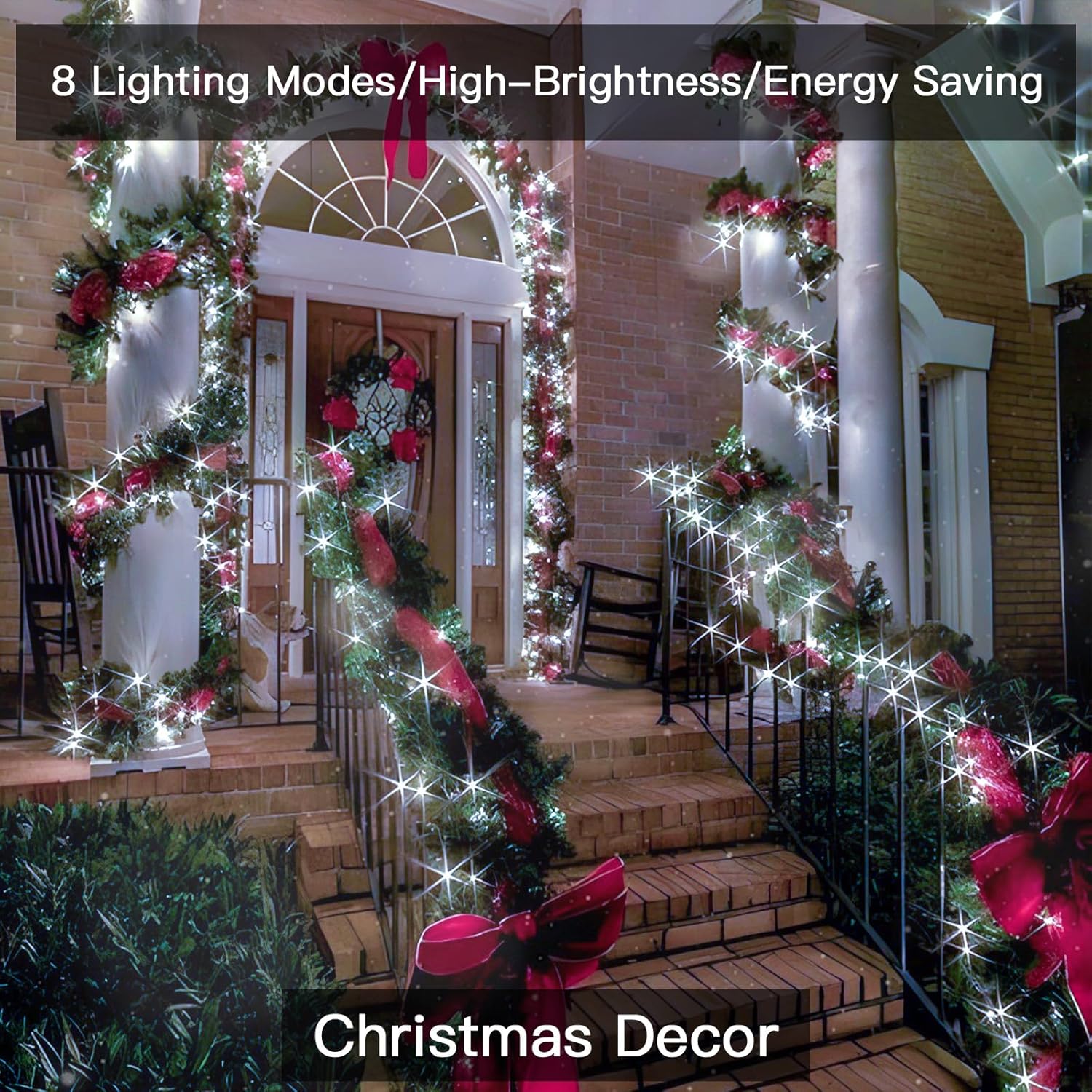 suddus Solar Fairy Lights Outdoor Waterproof, 2 Pack 33ft 100 LED Solar Twinkle Lights, 8 Modes White Solar Christmas Lights for Backyard Trees Patio Deck Garden Birthday Party Wedding Decorations