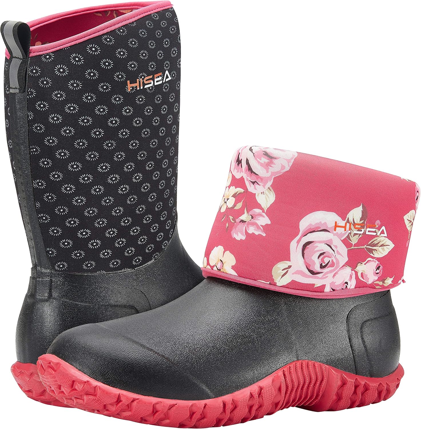 HISEA Women's Rubber Garden Boots Waterproof Insulated Yard Gardening Shoes Mid Height for Mud Working Outdoor