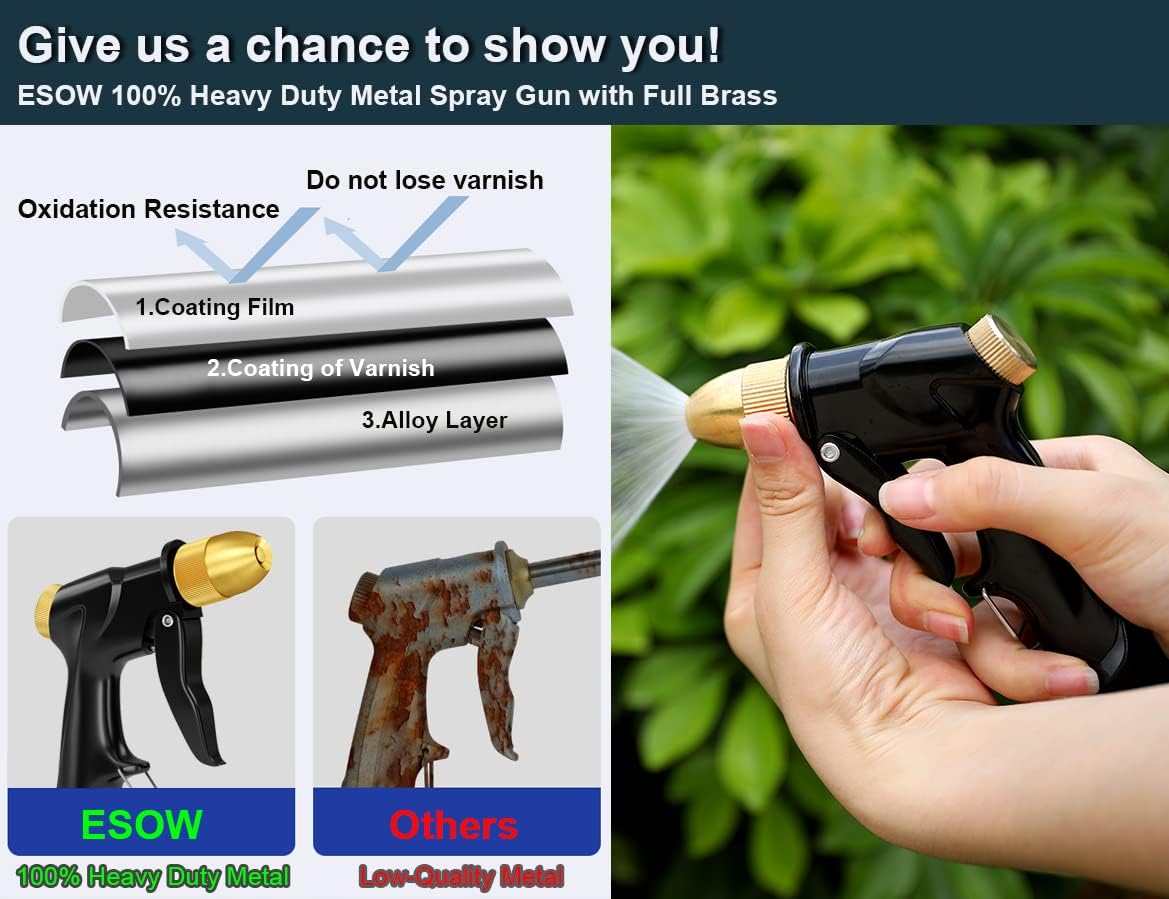 ESOW Garden Hose Nozzle, 100% Heavy Duty Metal Spray Gun with Full Brass Nozzle, High Pressure Watering Nozzle, Adjustable Spray Water Flow for Watering Plants, Showering Pet, Washing Car, Cleaning