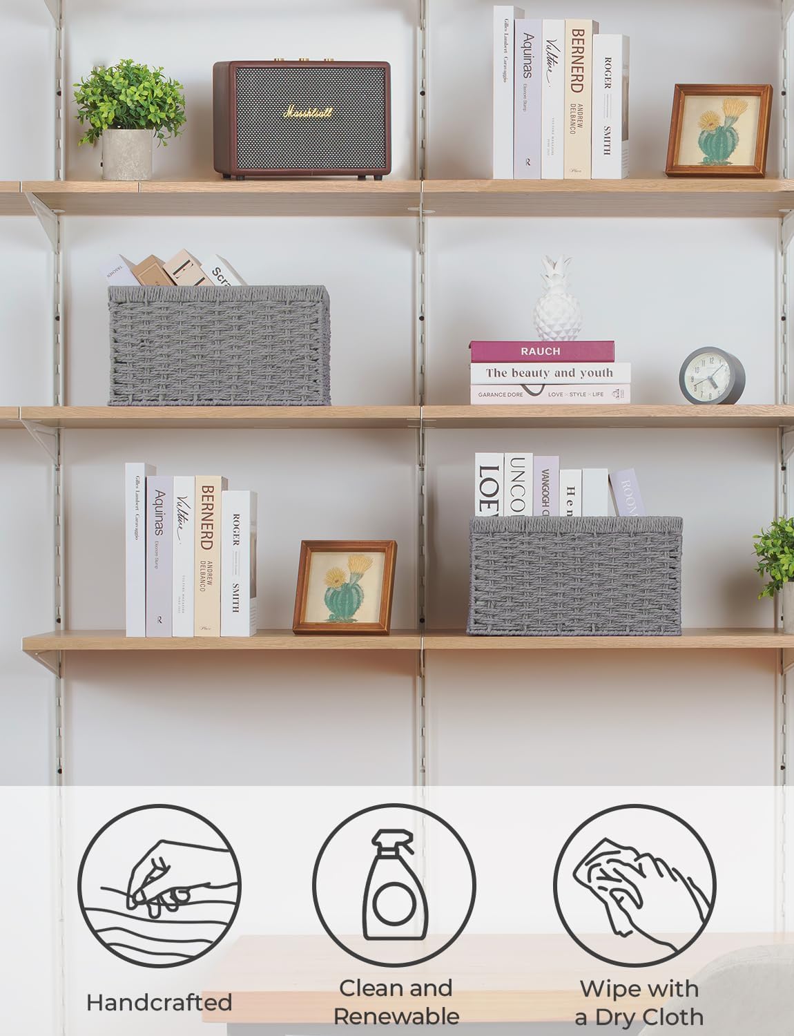 - Recycled Material: Made from durable, recyclable paper rope, designed for long-lasting use and easy recycling, combining storage functionality with a commitment to a low-carbon lifestyle.