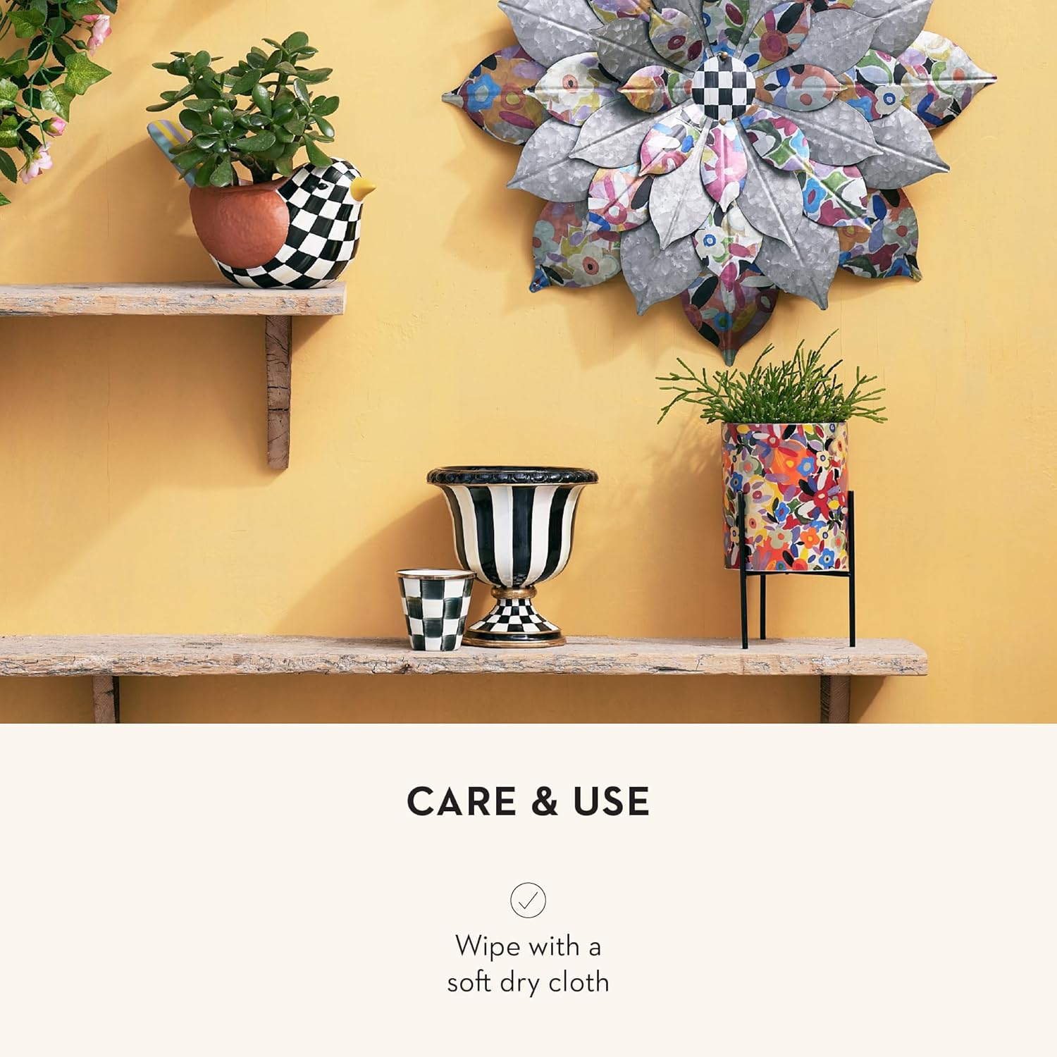 - DECORATIVE PEDESTAL VASE: Create the perfect centerpiece or elegant accent with this pedestal planter. It features our signature Courtly Stripe pattern with hand-painted black-and-white stripes and golden embellishments.