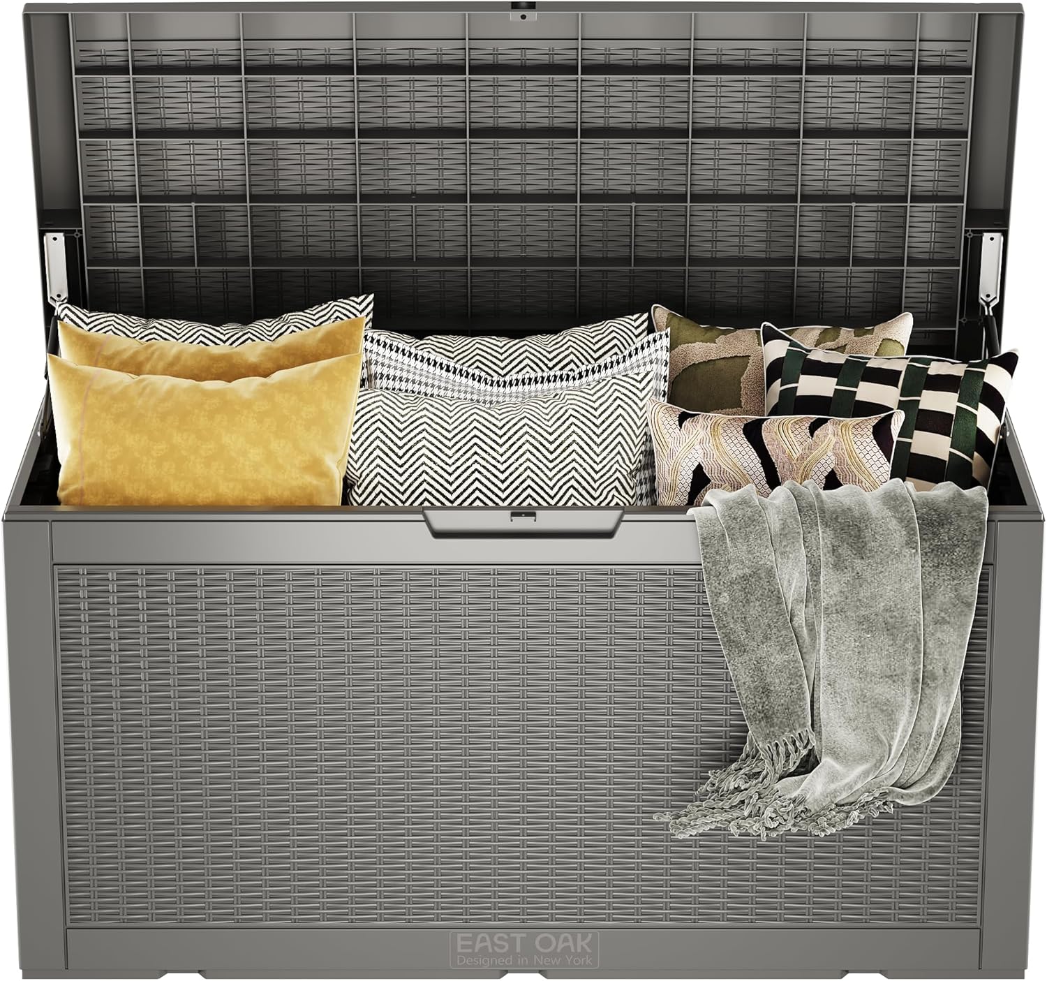 - ππ«π§π₯π π¦πππ§ π’π₯ π§ππππ: EAST OAK patio storage box provides extra comfortable bench seating with a weight capacity of 880 lbs. This multipurpose outside storage box is suitable for those big backyard parties or a place to rest after working in your yard