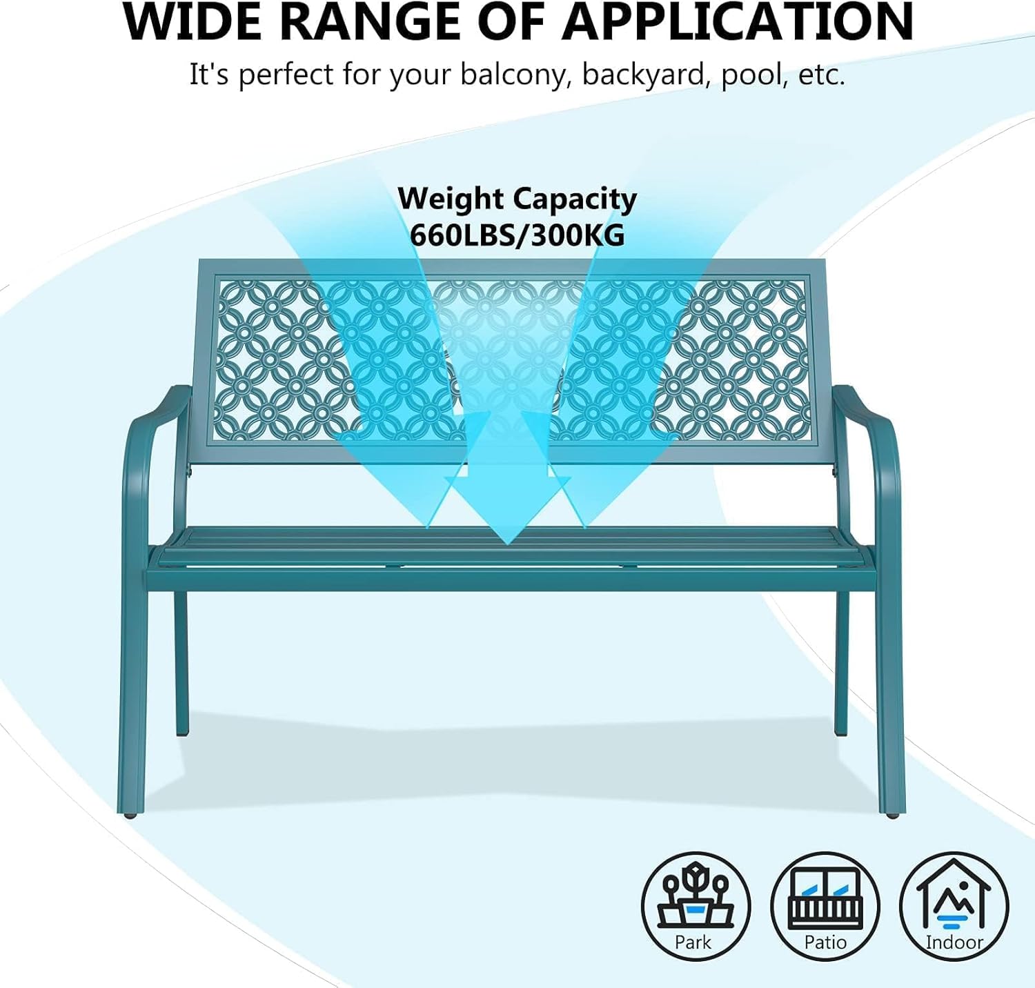 - Strong Structure: This sturdy, full-size patio bench is made of thickened steel back and seat, wider and stronger armrests and backrest design makes you feel more comfortable. Max load capacity reach 660 lbs