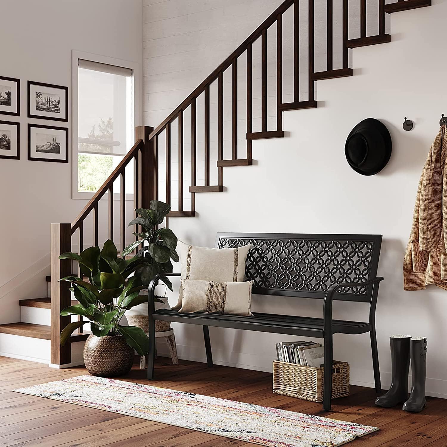 Grand patio 50" Outdoor Bench Garden Bench with Armrests Bench for Outdoors Lawn Yard Porch Black