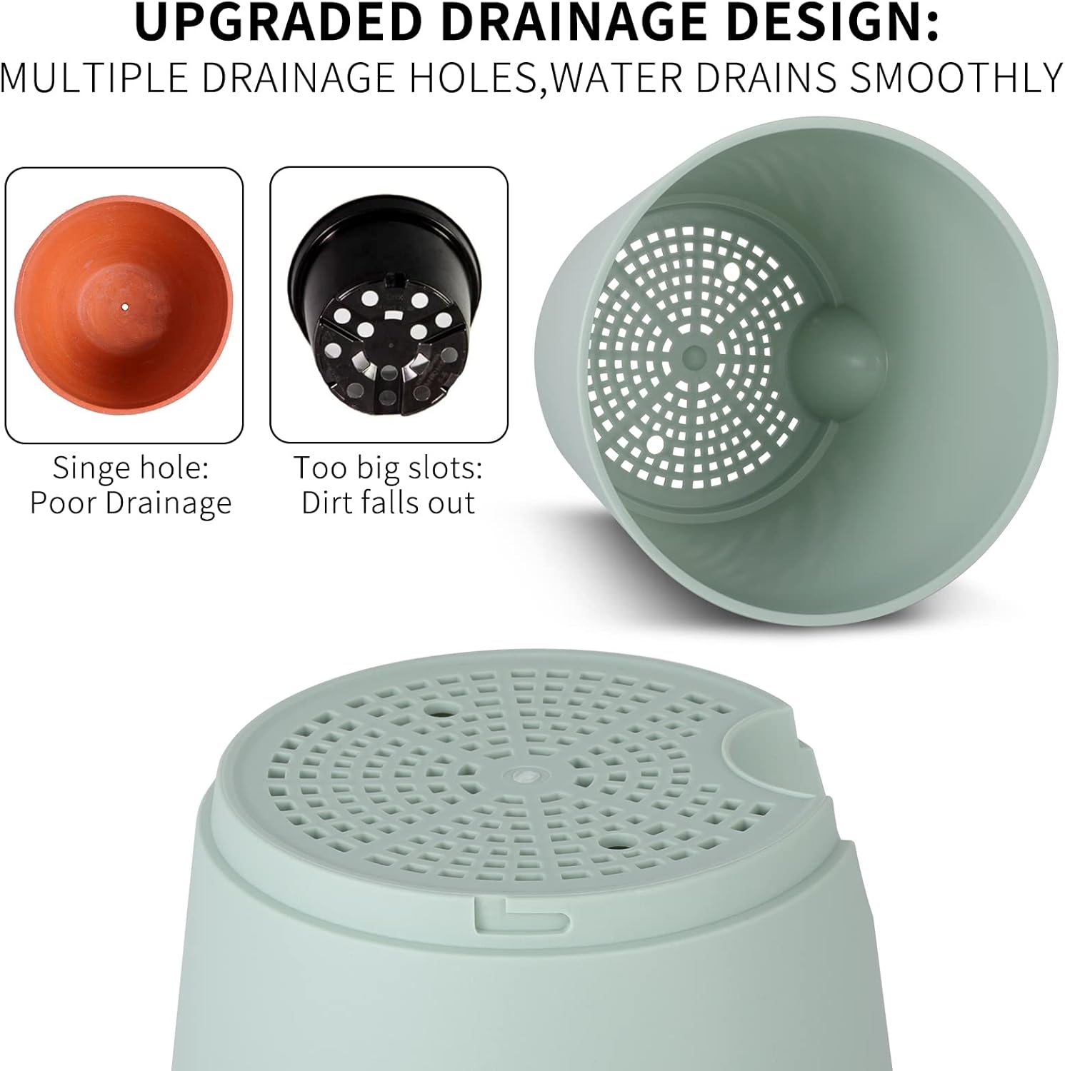 GARDIFE Plant Pots 7/6.5/6/5.5/5 Inch Self Watering Planters with Drainage Hole, Plastic Flower Pots, Nursery Planting Pot for All House Plants, African Violet, Flowers, and Cactus,Green
