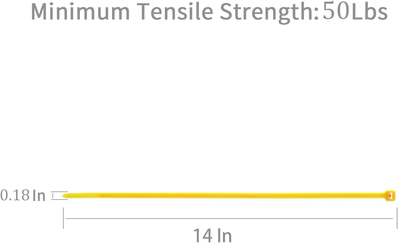 XINGO 100PCS Cable Zip Ties Heavy Duty, Premium Nylon Plastic Wire Ties with 50 Pounds Tensile Strength, Self-Locking Black Nylon Zip Ties for Indoor and Outdoor (14 inch, Yellow)