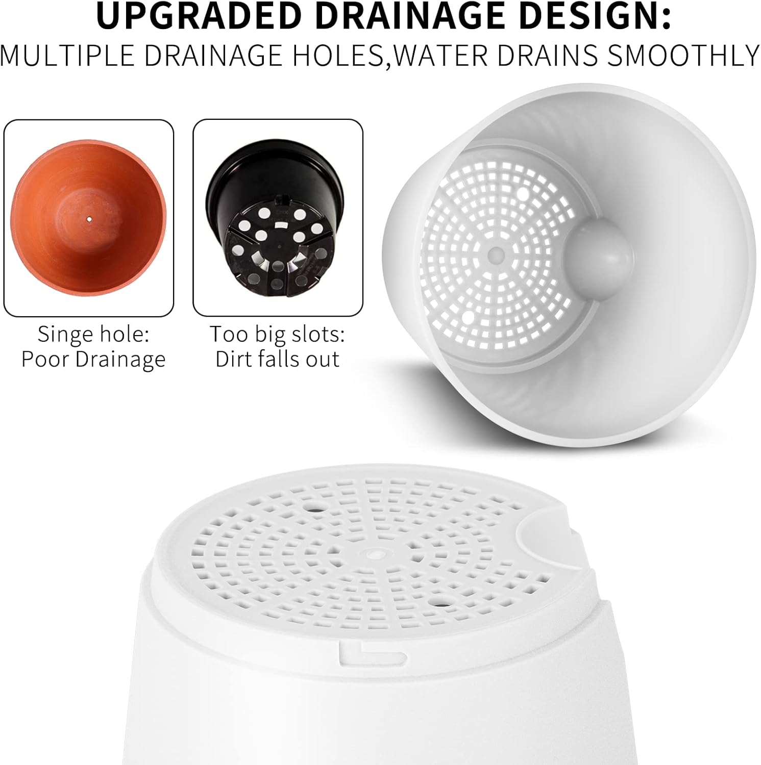 GARDIFE Plant Pots 8/7/6.5/6/5.5/5 Inch Self Watering Planters with Drainage Hole, Plastic Flower Pots, Nursery Planting Pot for All House Plants, African Violet, Flowers, and Cactus,White