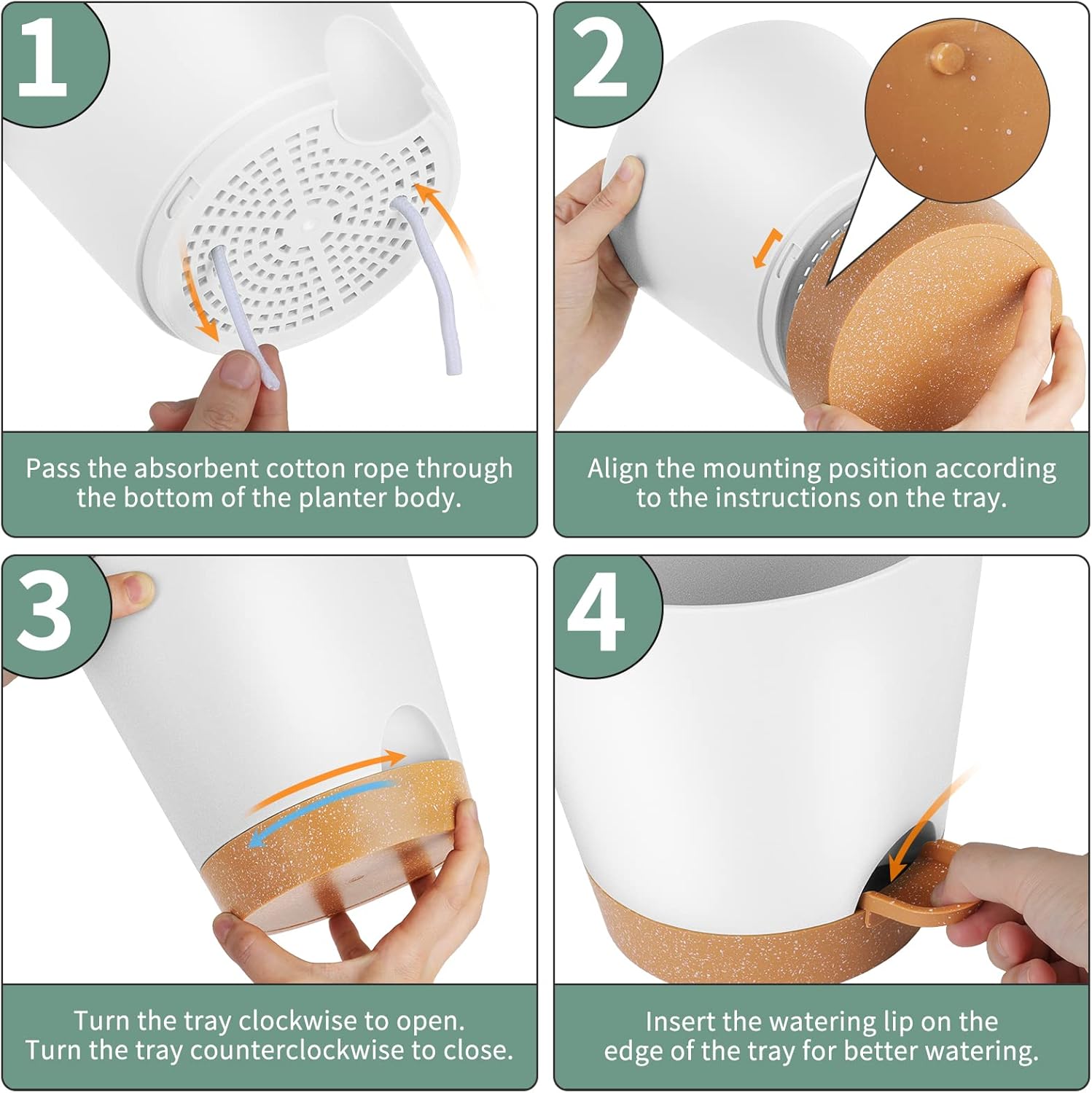 - 【Excellent Drainage Holes and Watering Lip】These flower pots for plants come with multiple drainage holes in the bottom. The holes and watering lip provide an air circulation system for the plant roots, which greatly reduces the problem of root rot of plants in a closed environment. The independent watering lip replenishes water for plants, so that water does not have to pass through the plant itself, At the same time, it is convenient to observe the current water level.