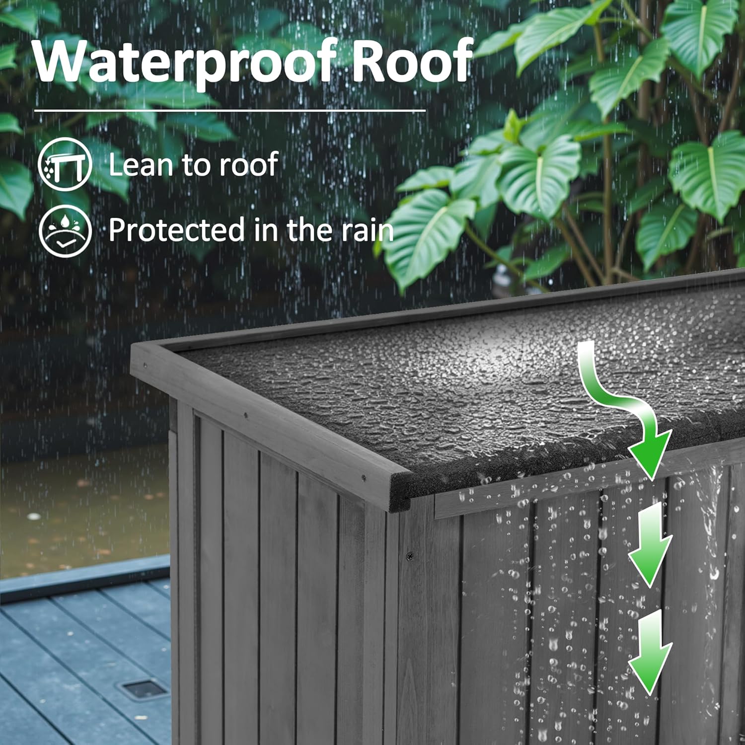 - Waterproof Roof: The sloping asphalt roof is not only waterproof but also avoids water accumulation, prolonging the life of the patio cabinet storage waterproof.