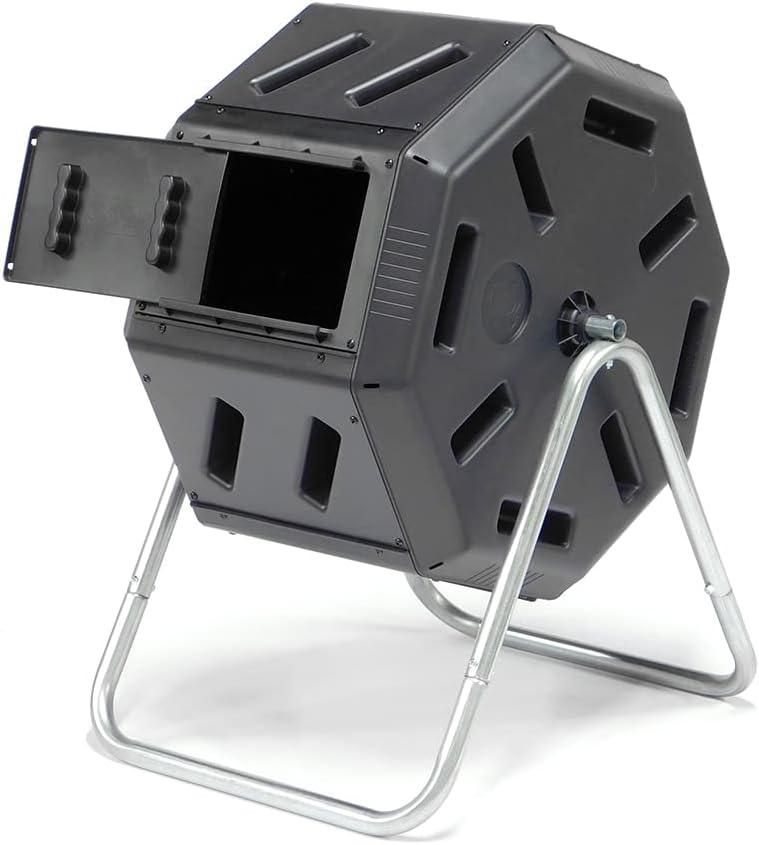 - TUMBLING COMPOSTER – Avoid digging and mixing your compost pile by hand. The tumbling design makes mixing easy and efficient. Just close the door and turn it 5-6 times every 2-3 days. In hot sunny conditions and with a proper balance of ingredients the compost can finish in as little as 2 weeks. Total capacity approximately 22.5 gallons (3 cu ft)