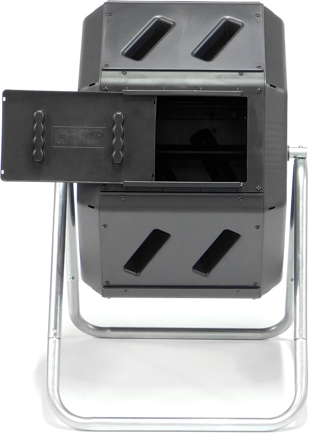 - EASY TO USE – Fantastic for beginners! The large opening and removable door make it easy to add scraps/clippings and remove finished compost. Deep fins on the body provide great ergonomic handholds.