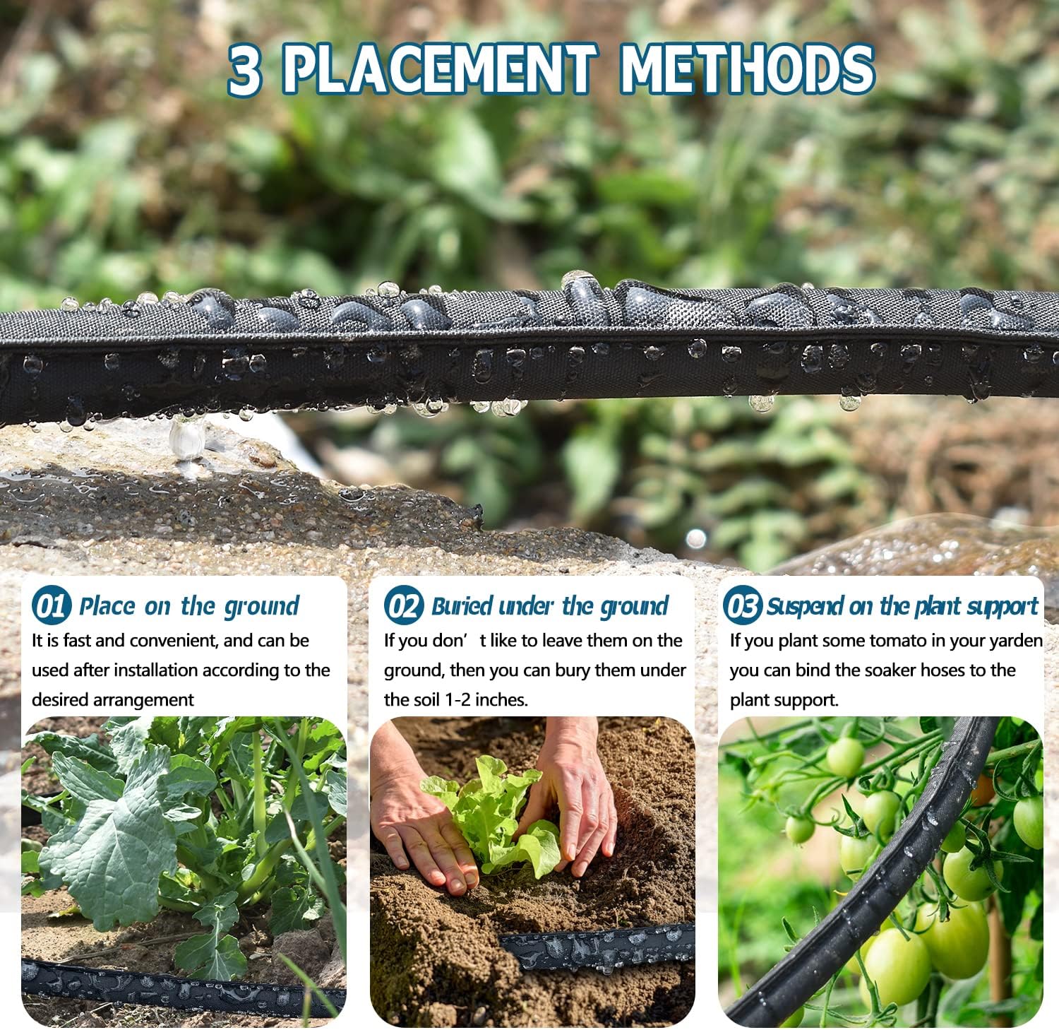 - Easy To Install & Storage: The soaker hose can be easily integrated into your existing watering system without the need for specialized tools or expertise, allowing you to set it up and start using it in no time. The hose can be rolled up and stored in a compact manner when not in use, making it a space-saving option for those with limited storage space. Additionally, the flat design of the hose allows it to be easily coiled, preventing tangles and easy to store.
