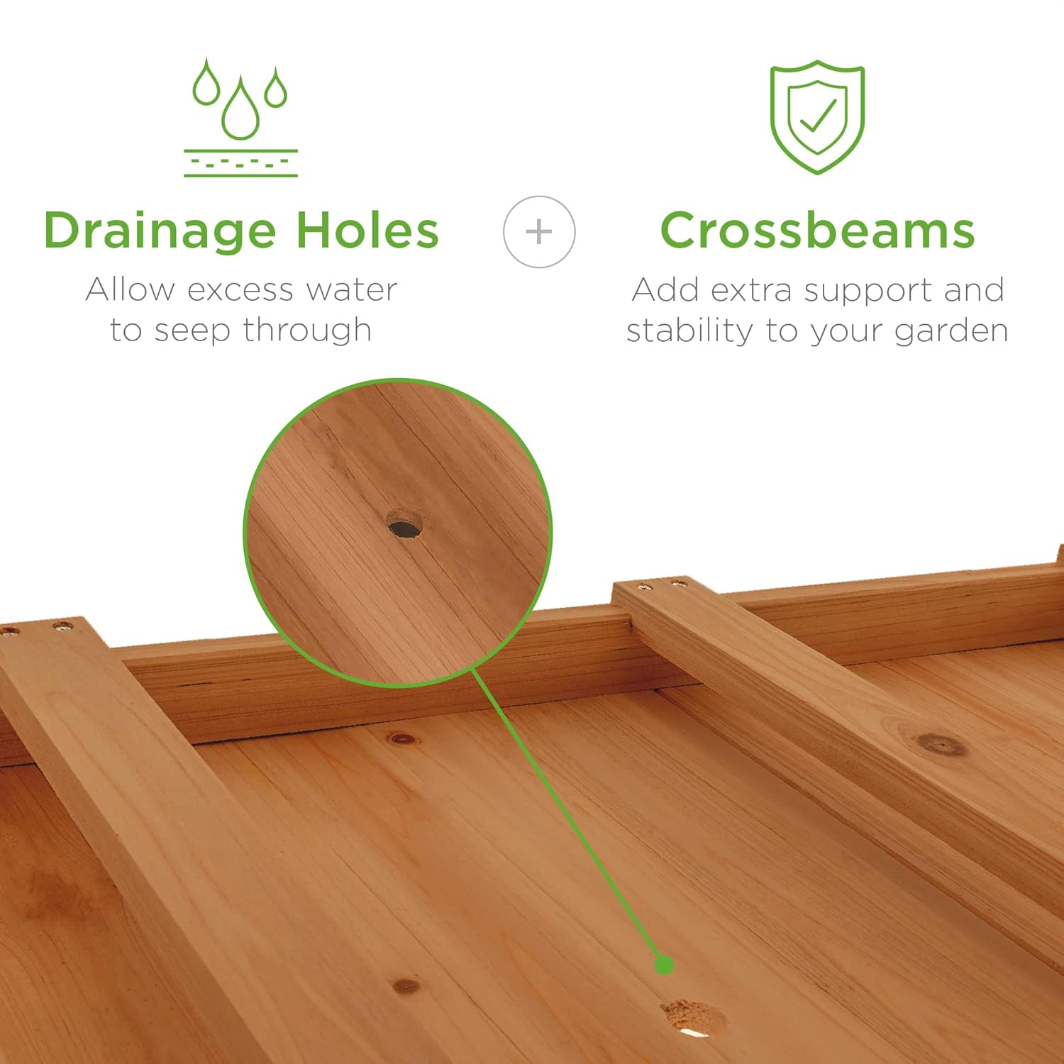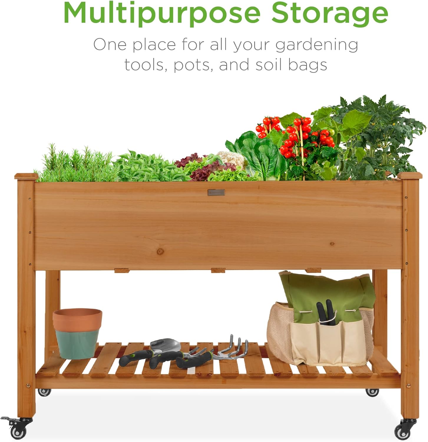 Best Choice Products Raised Garden Bed 48x24x32-inch Mobile Elevated Wood Planter w/Lockable Wheels, Storage Shelf, Protective Liner - Acorn Brown