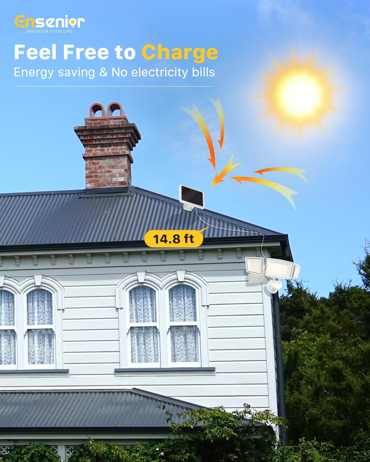 - 💡 [Wide Angle & Motion Sensor] Ensenior security flood light has adjustable 3 heads and a large 270° beam angle, illuminating a wider area with right-angle installation. The 180° sensor detects movement up to 75FT, providing extra security for your home.
