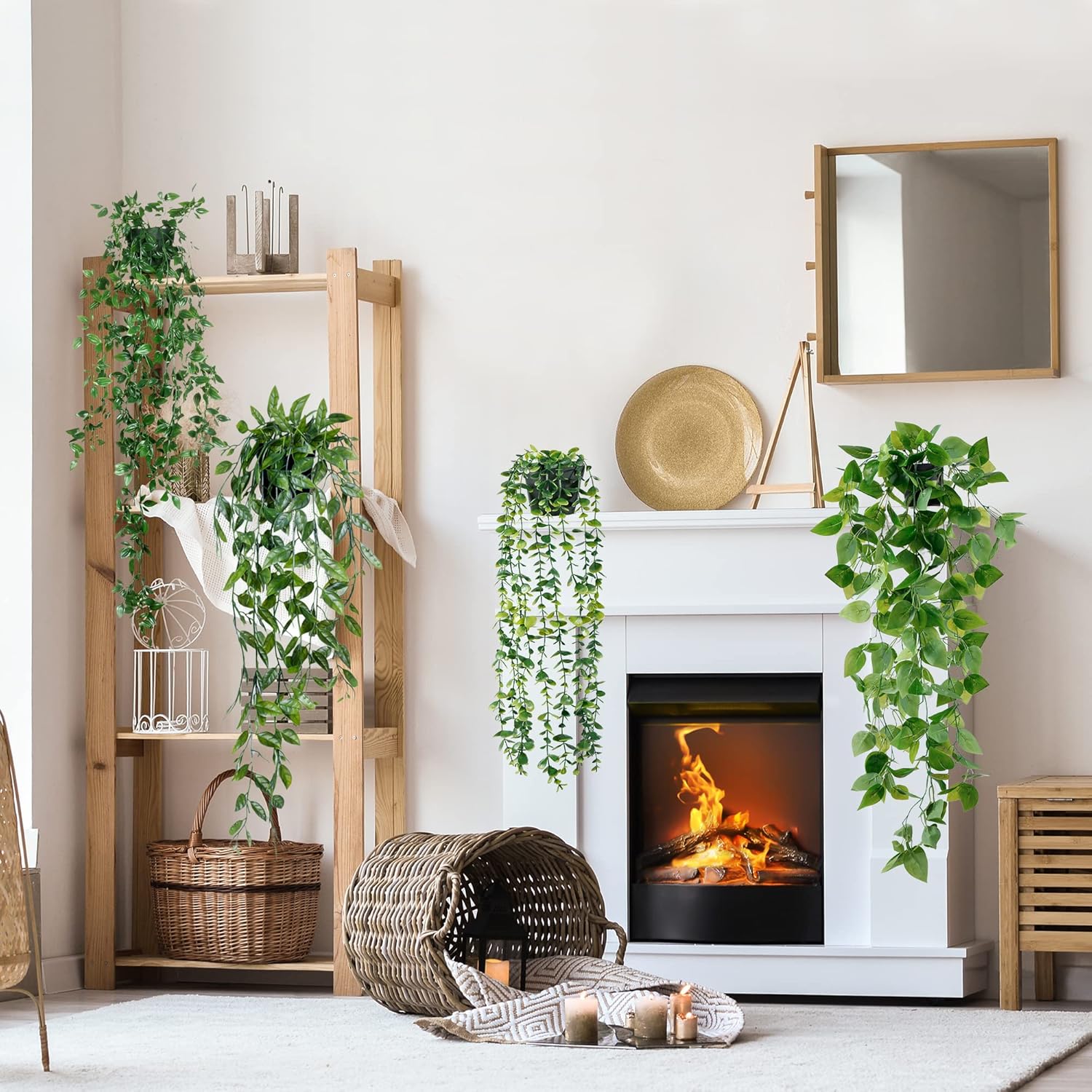 - [REALISTIC APPEARANCE]: The fake potted hanging greenery has 100% lifelike reduction in shape and color with clear leaf veins. Our special making processing makes it more vivid, will not wilt and fade, just like the real one.
