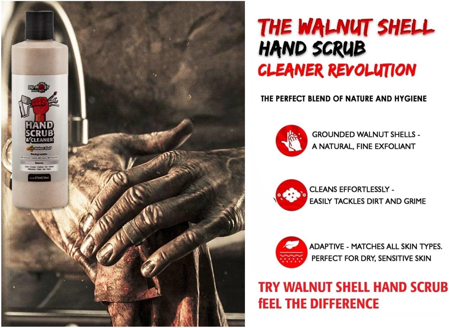 - DU-MOST Hand Scrub & Cleaner with walnut shells is highly effective in removing stubborn stains. Ideal for after-work clean-up for mechanics and farm workers
