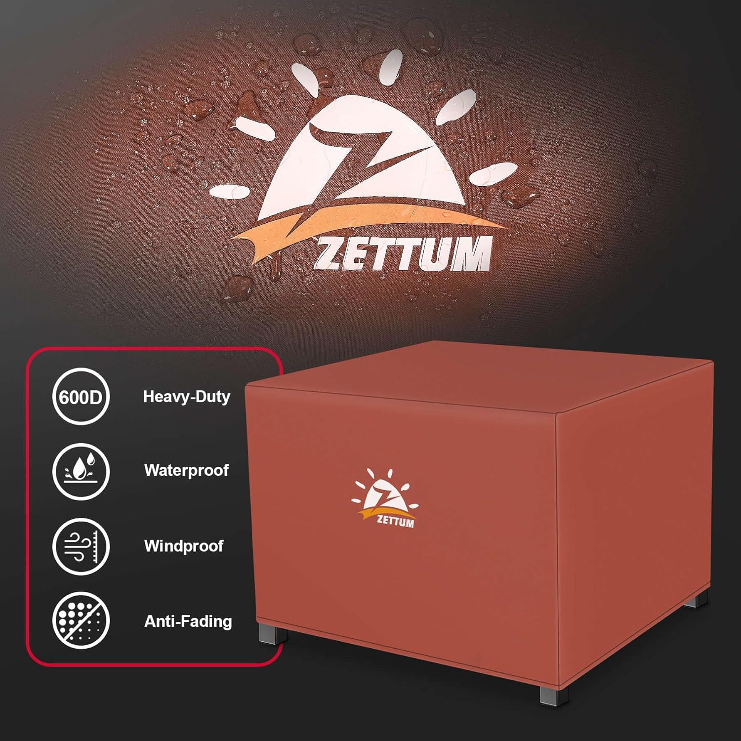 - | 600D Heavy-Duty & Super Waterproof | - Made of Premium 600-Density oxford cloth with PU coating, Zettum outdoor fire pit covers are extremely heavy-duty and super waterproof. Compared with PVC type cover, our firepit covers are more breathable and softer, hard to be torn in outdoor. More important, PU type coating are more environmentally friendly!!