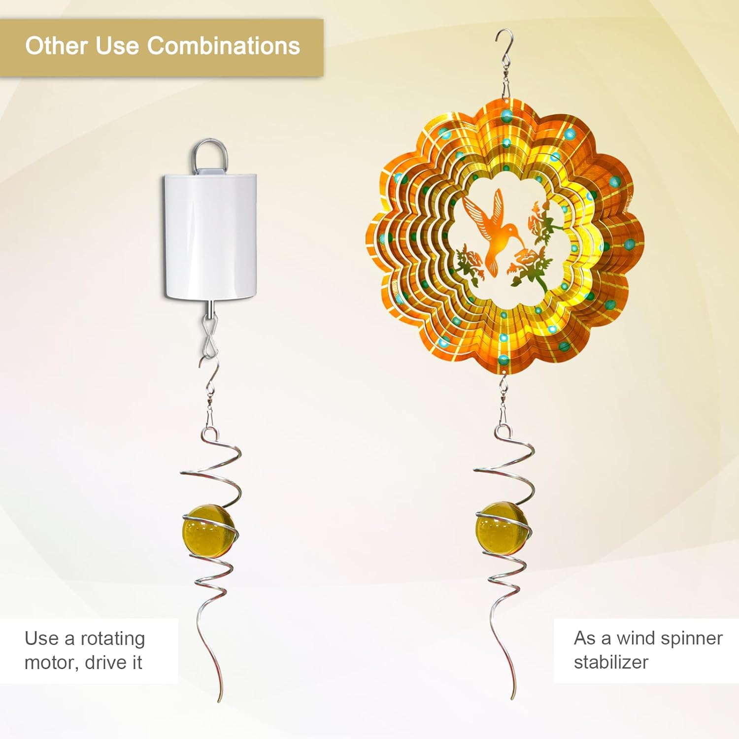 - ăSpiral Tail for Wind SpinnerăThe spiral tail works perfectly with the outdoor wind spinner, not only as a stabiliser to keep your wind spinner outdoor spinning smoothly in the wind, but also to enhance the overall aesthetics, taking your outdoor decoration to the next level.