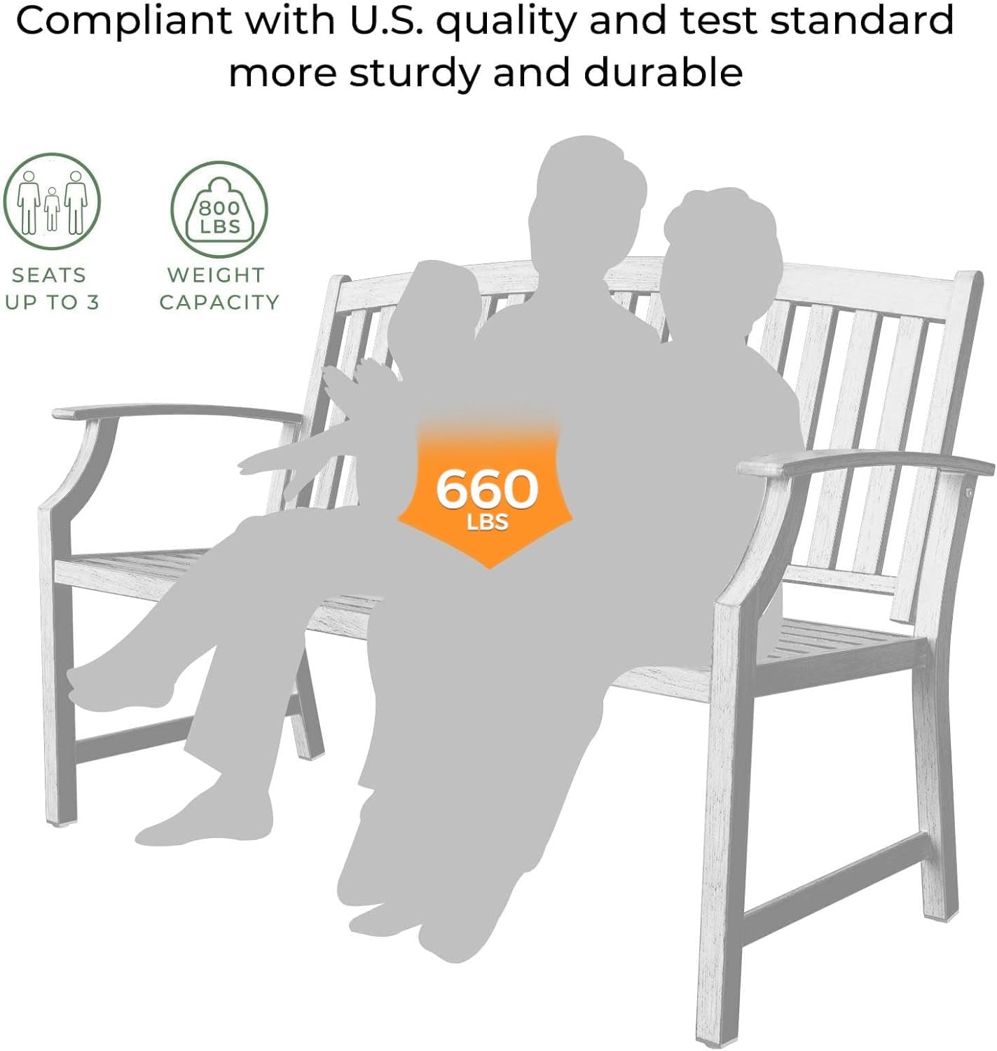 - ăCOMFORTABLE SIZEăOverall Dimension 50.39"(L) x 21.92"(W) x 35.03"(H), the seat capacity of garden bench allows up to 2 adults and 1 child to share a space