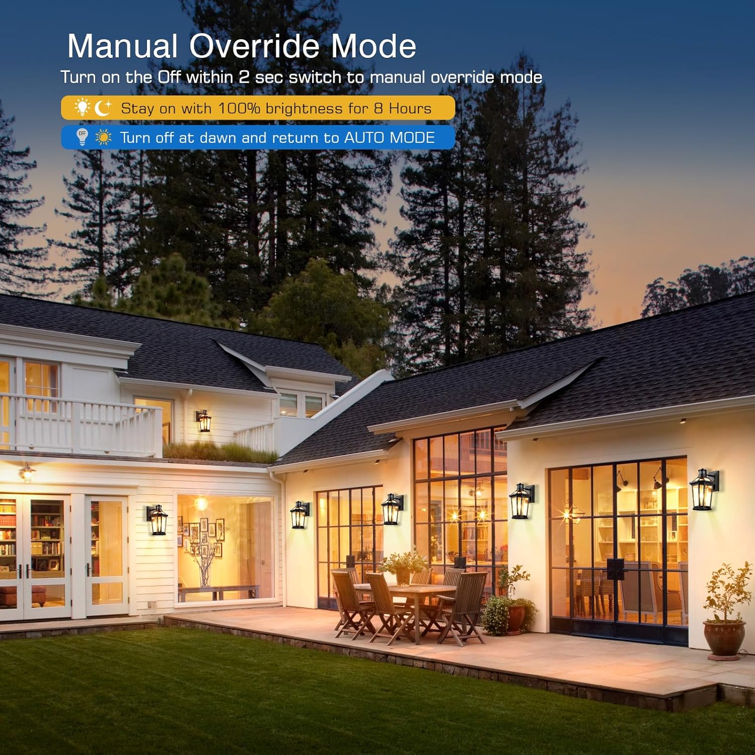 - ๐ [ Upgraded Motion Sensor ] Our porch lights outdoor feature a brand-new motion sensor with forr diverse modes, and easy one-button switch function: โ DIM mode: 100% brightness at night when motion is detected, and 30% brightness the rest of the time ( adjustable from 10% to 50%). โกECO Mode: Keep the light off at night, and turn on the light at 100% brightness when motion is detected. โขD2D mode: 100% brightness at night, automatically turn off at dawn. โฃOverride Mode: Maintains 100% brightness for approximately 8 hours, but automatically turns off at dawn and reverts to the previous operating mode.