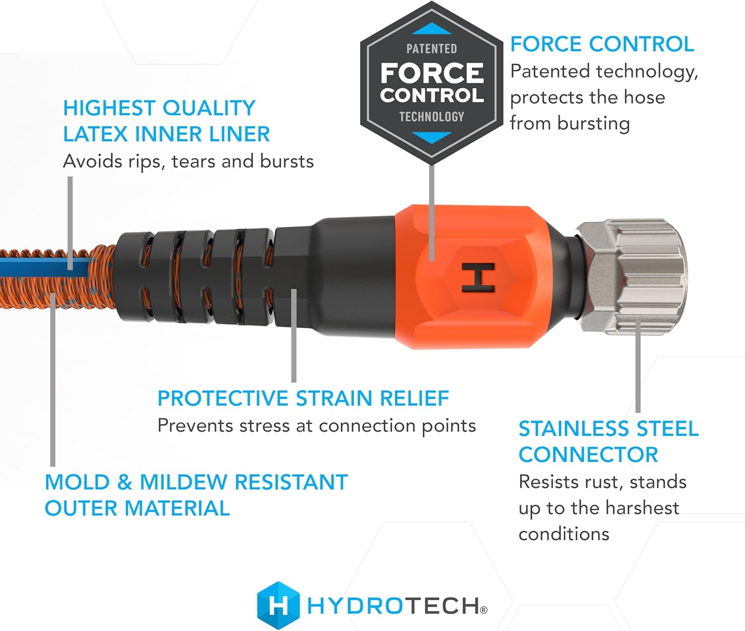 HydroTech 75 ft Expandable Garden Hose - Pro Series, 2x Max Flow, 3/4" No-Kink Flexibility, Lightweight Hose for Lawn, Garden, Car Washing, Deck and Patio Cleaning