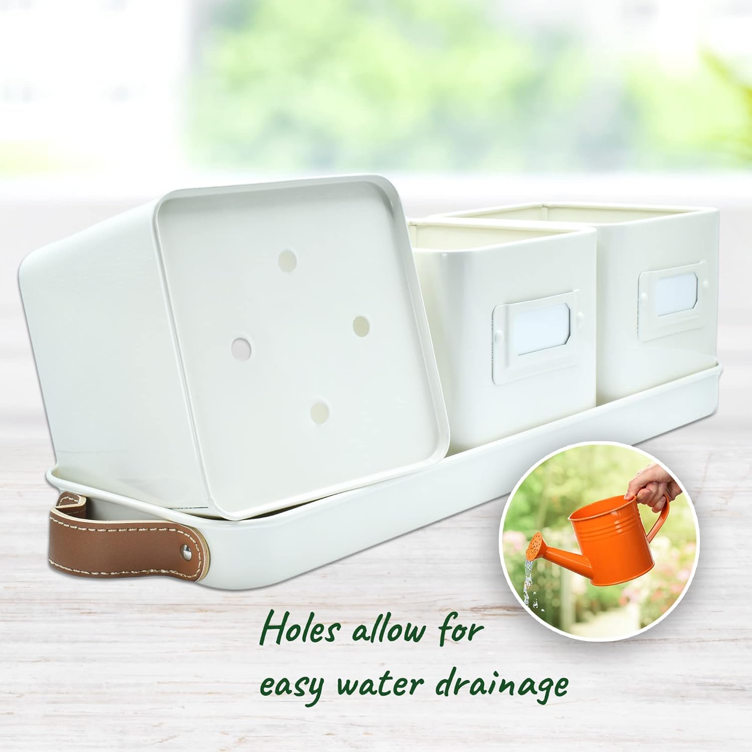 - π· γ Tray Included γThe tray of the herb pot serves as a protective barrier, preventing water from damaging surfaces like windowsills or countertops. It also helps contain any excess water that drains from the pots for herbs, keeping your indoor area clean.