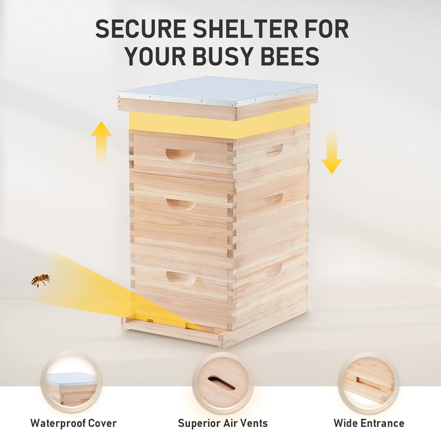 - USER-FRIENDLY DESIGN: This 3-layer beehive starter kit is designed with features such as a solid bottom board, widened entrance reducer, plastic queen excluder, and inner cover to make beekeeping convenient for beekeepers at all levels
