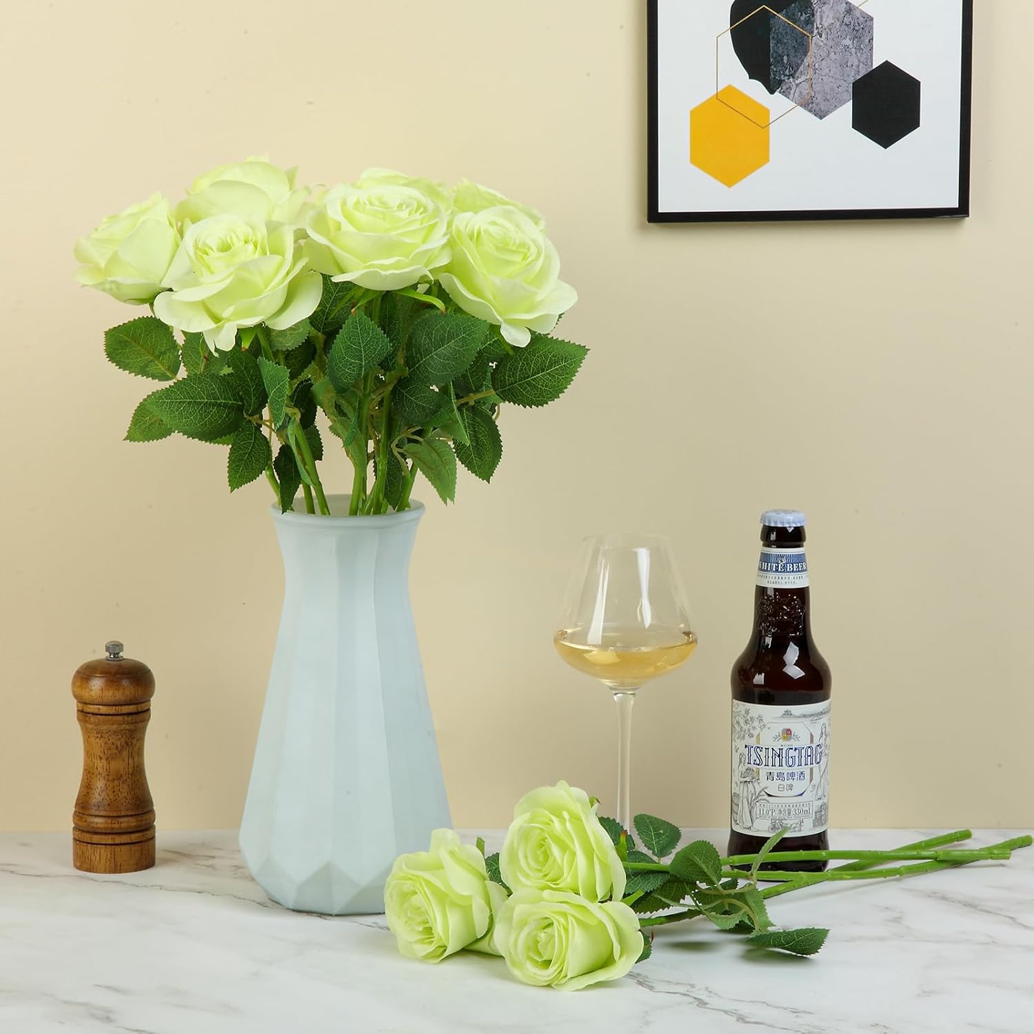 12pcs Light Green Roses Artificial Flowers Fake Roses Silk Flowers Roses with Long Stems for Wedding Home Party Centerpieces Decorations
