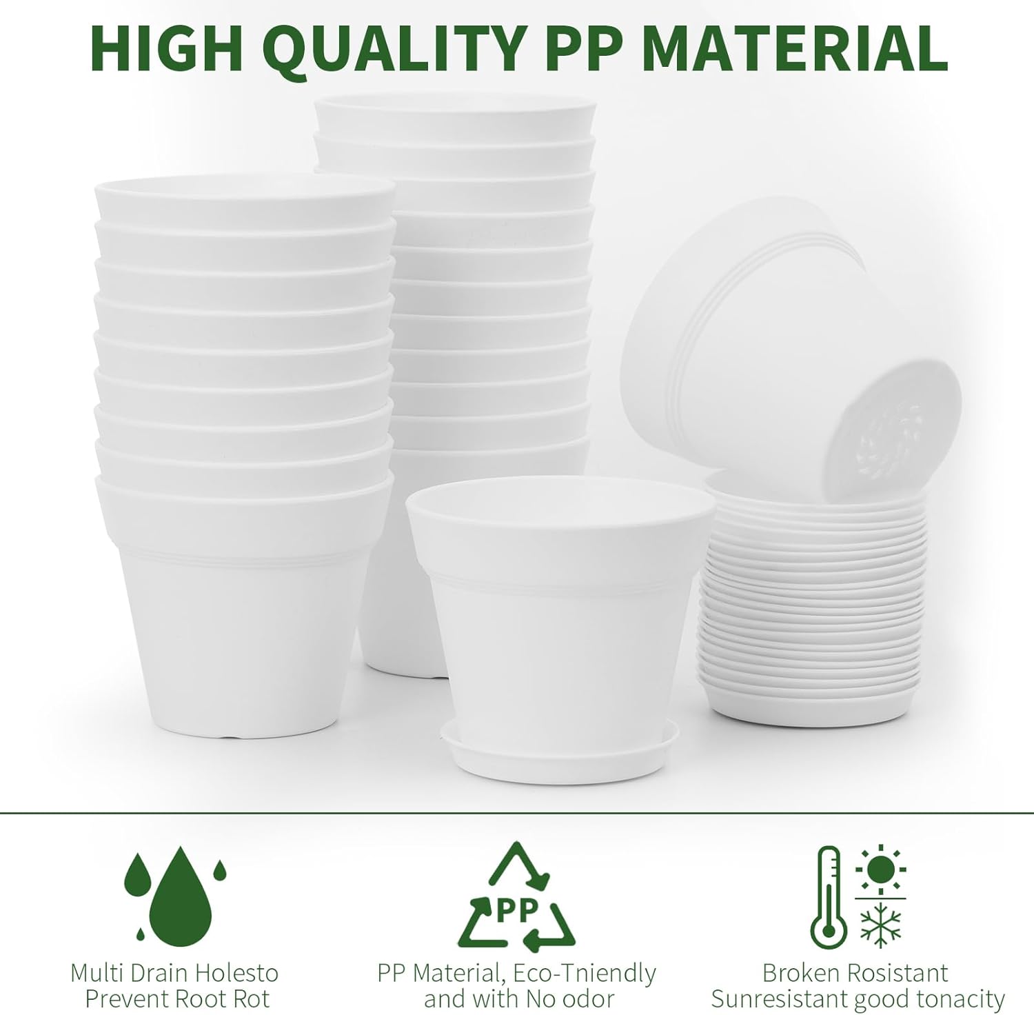 - 【Environmental Material】Made of durable recyclable plastic,solid plastic plant pots protect plants and soil. Premium polypropylene planters feel sturdy in hand but not too heavy. Thick sidewalls 4mm in size keep everything in place.