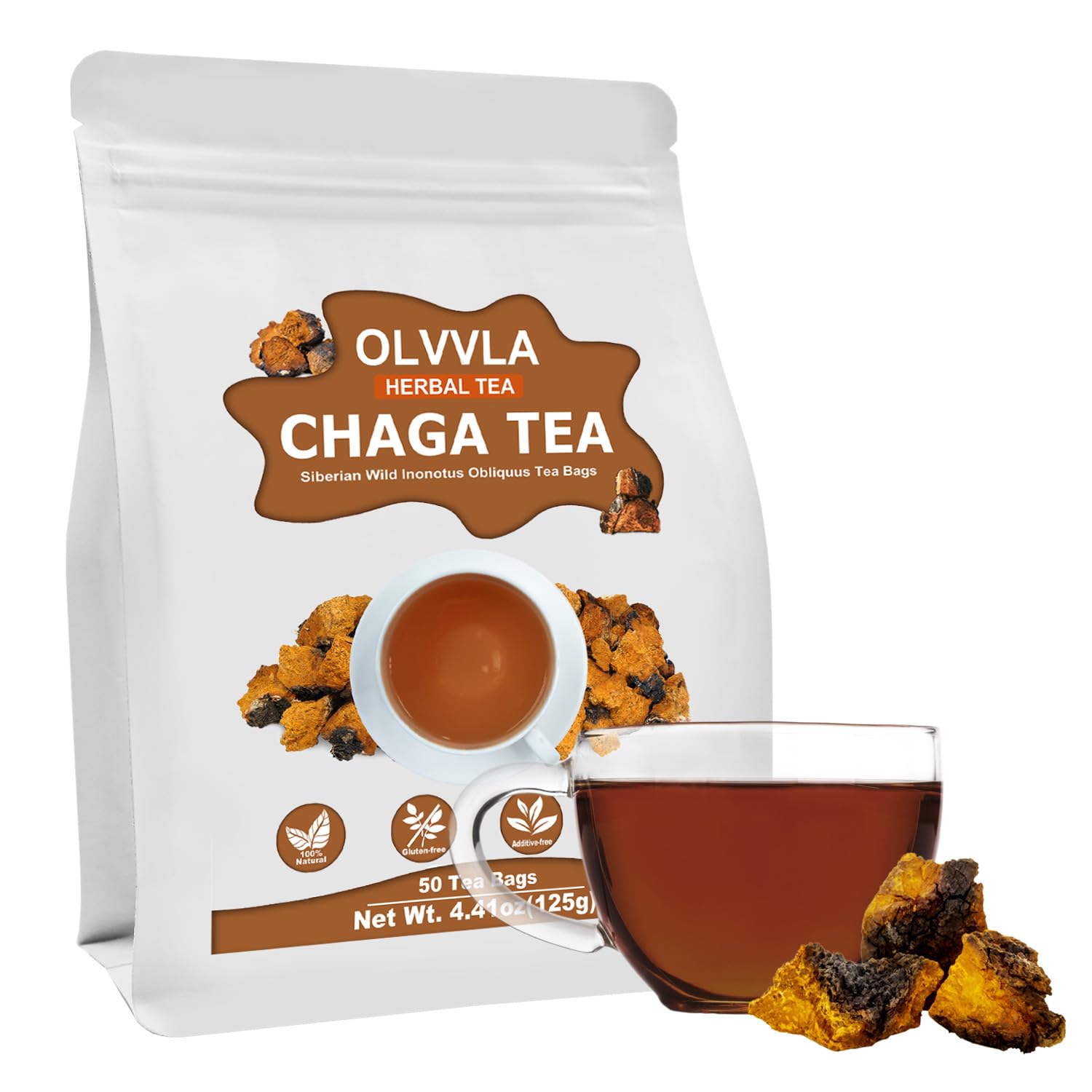 Olvvla - Chaga Tea Bags - 2.5g X 50 Count - 100% Wild Natural Chaga Mushroom Herbal Tea - Sourced from Siberia - Caffeine Free - Gluten-Free - Rich in Antioxidants