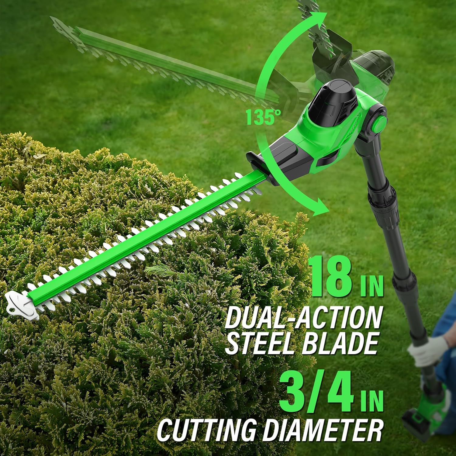 SOYUS Pole Hedge Trimmer Cordless, 18-inch Electric Hedge Trimmer with Extension Pole, 15-Foot Max Reach, Multi-Angle, 2.0Ah Battery and Charger Included