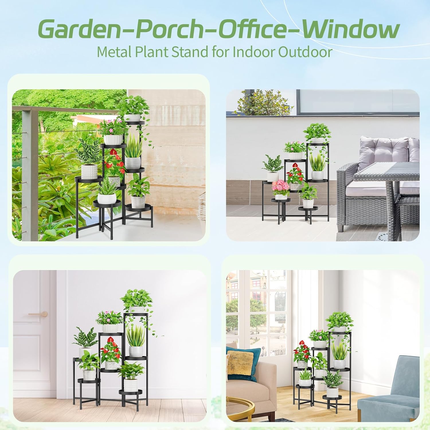 - Space-Saving Adjustable Design: The plant stand outdoor has the fixed center pole while outer legs rotate smoothly, letting you shape it to fit corners or straight spaces. It provides a flexible display that adapts easily and folds for convenient storage
