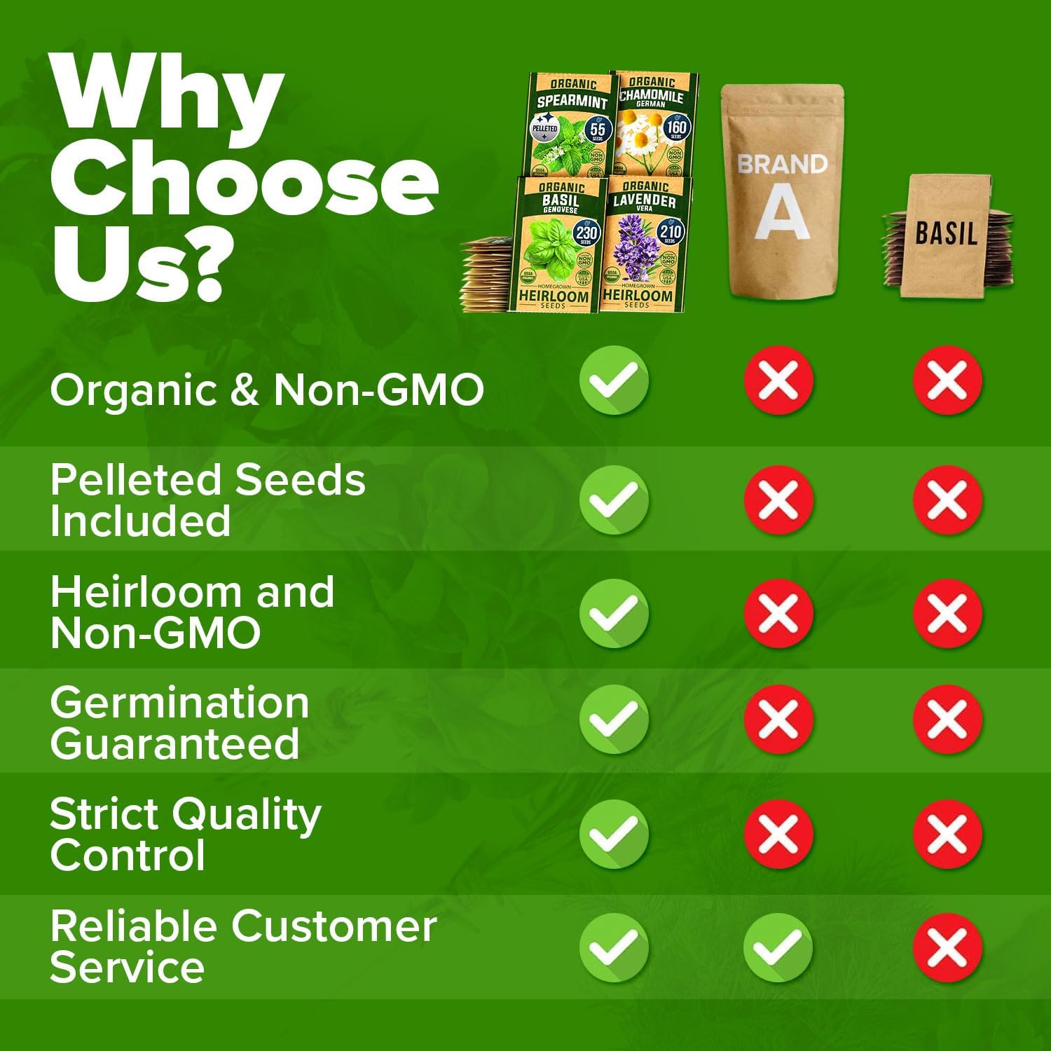 - CERTIFIED USDA ORGANIC AND NON-GMO VERIFIED: Grown in the USA using sustainable practices, these herb seeds are free from harmful chemicals, pesticides, and synthetic fertilizers. Each seed packet is USDA Organic certified by ECOCERT, ensuring you're planting herbs that are as pure and natural as they come. Theyβre ideal for health-conscious growers who want to enjoy homegrown ingredients without compromising quality or the environment.