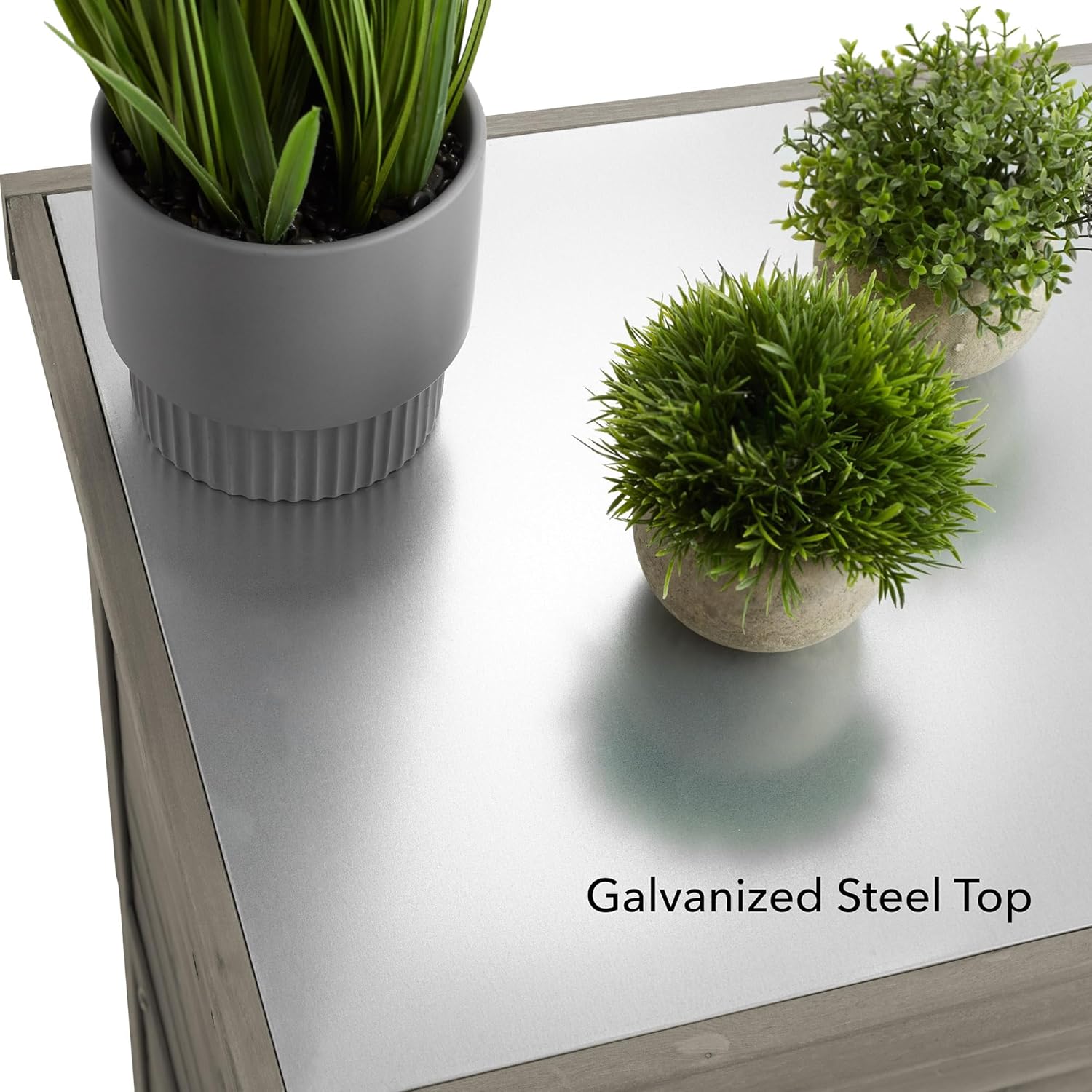 Casafield Outdoor Garden Potting Bench with Metal Tabletop and Storage Cabinet - Wooden Outdoor Garden Patio Workstation Table, Gray